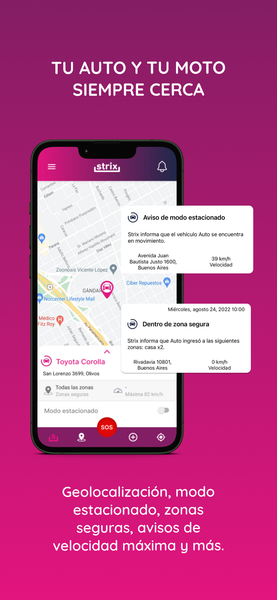 Creá tus zonas seguras: recibí notificaciones cuando el vehículo entre o salga de ellas (hasta 20 zonas).