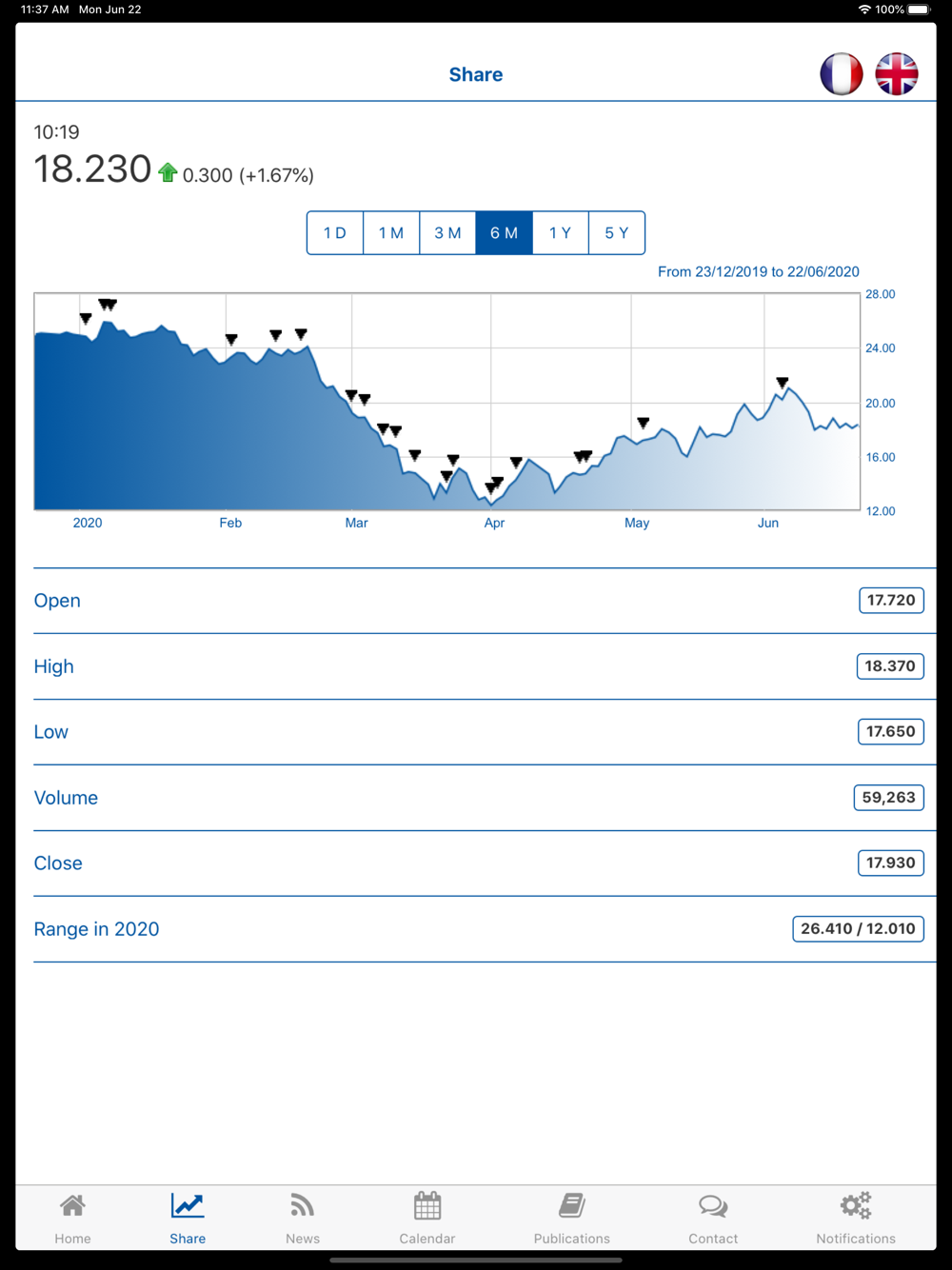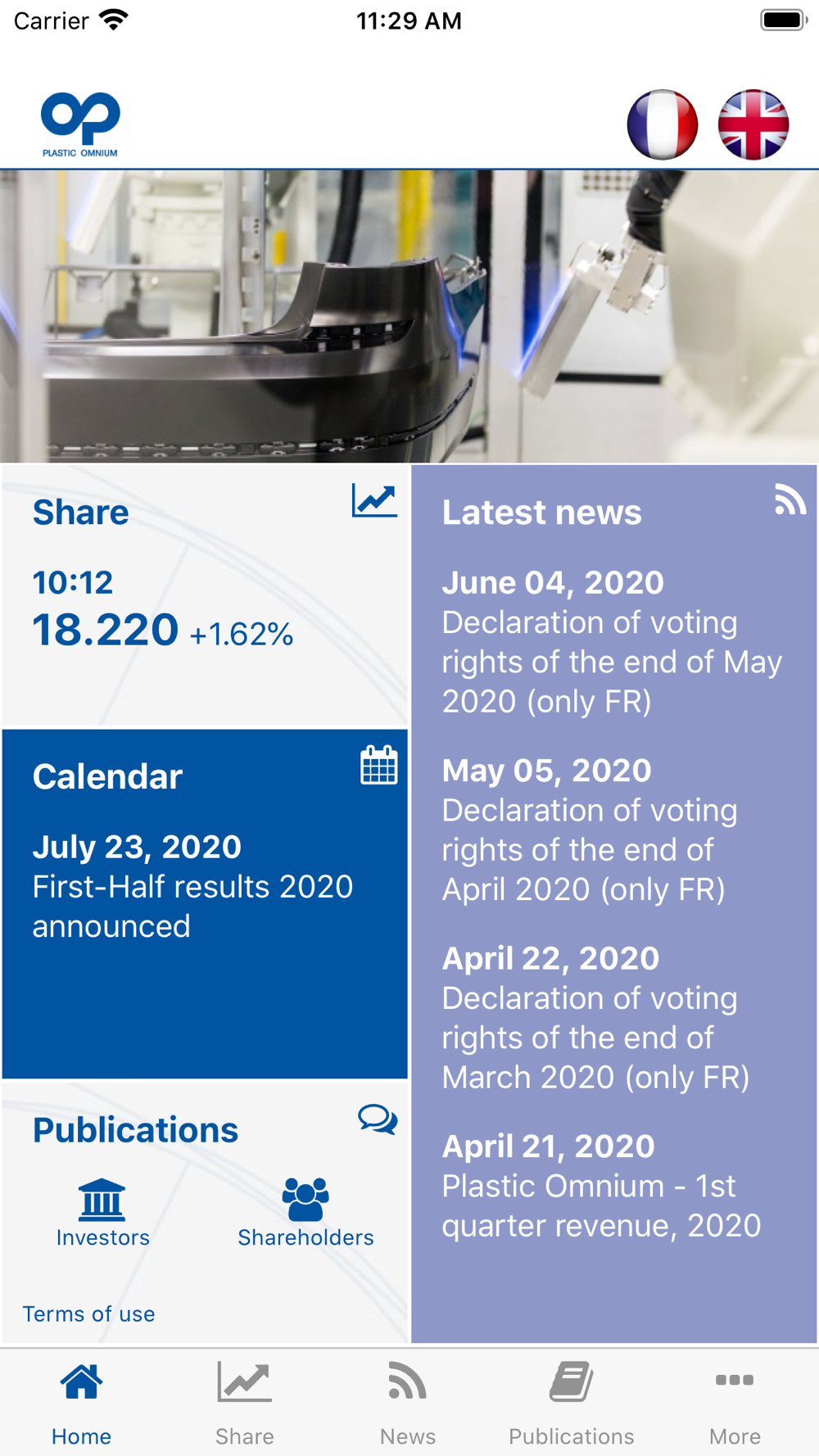 PLASTIC OMNIUM IR App enables you to follow in real time all the financial information of the group : share price, financial calendar, press releases, publications, shareholders area, regulated information …