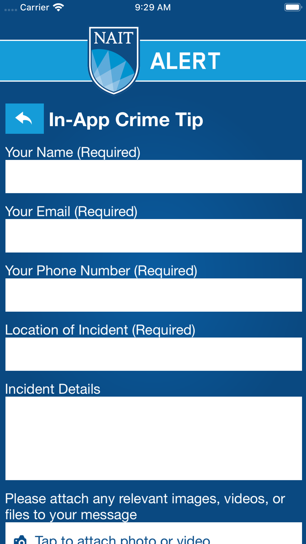 - Mobile Bluelight: Send your location to NAIT security in real-time in case of a crisis