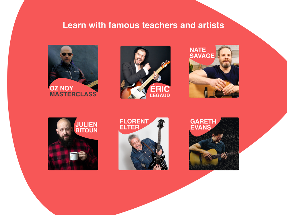 Learn how to play your favorite songs on the guitar with interactive scores synchronized with multi-angle videos. Take lessons and masterclasses from famous guitarists such as Oz Noy, Gareth Evans, Nate Savage, and many others.
