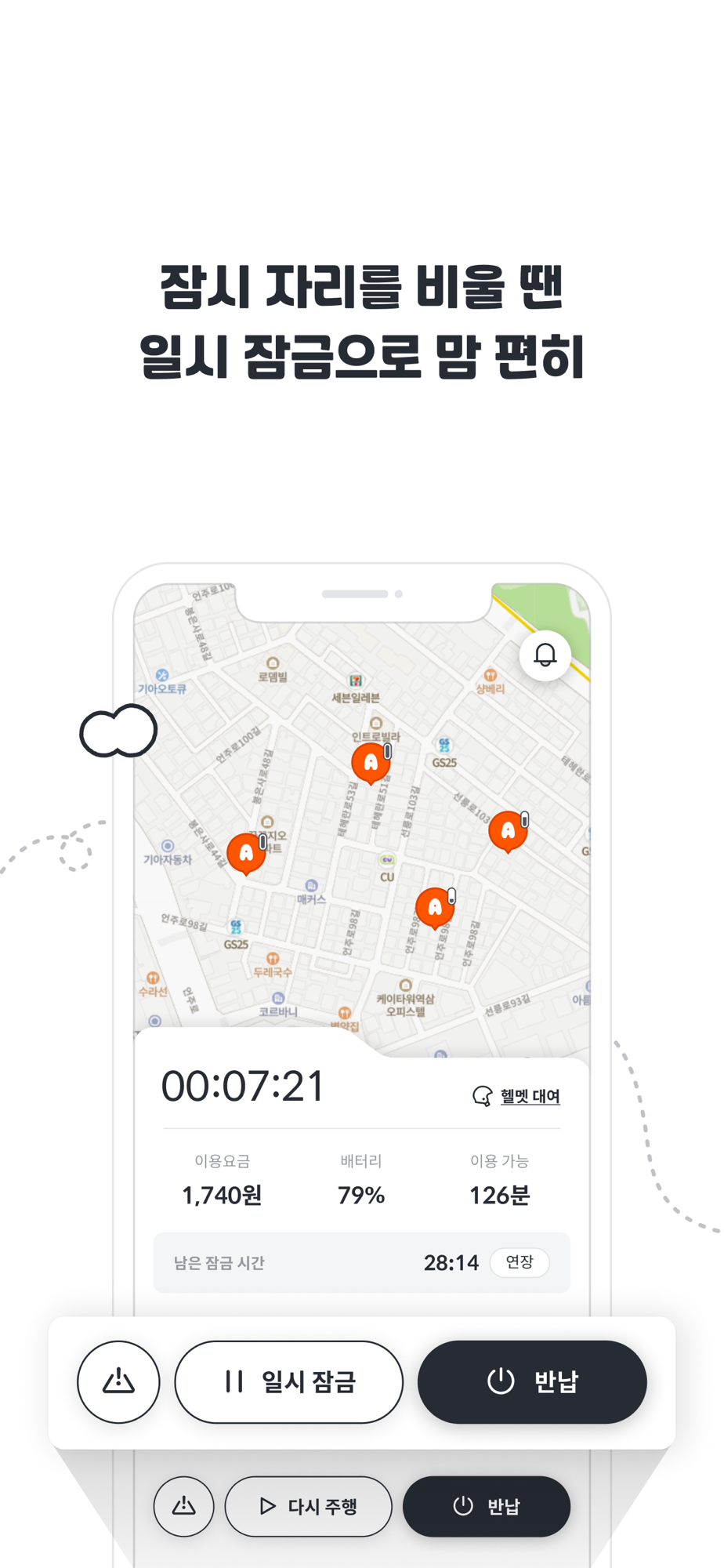 4.목적지에 도착하면 안전한 곳에 주차 후 사진과 함께 반납하면 끝.참 쉽죠?