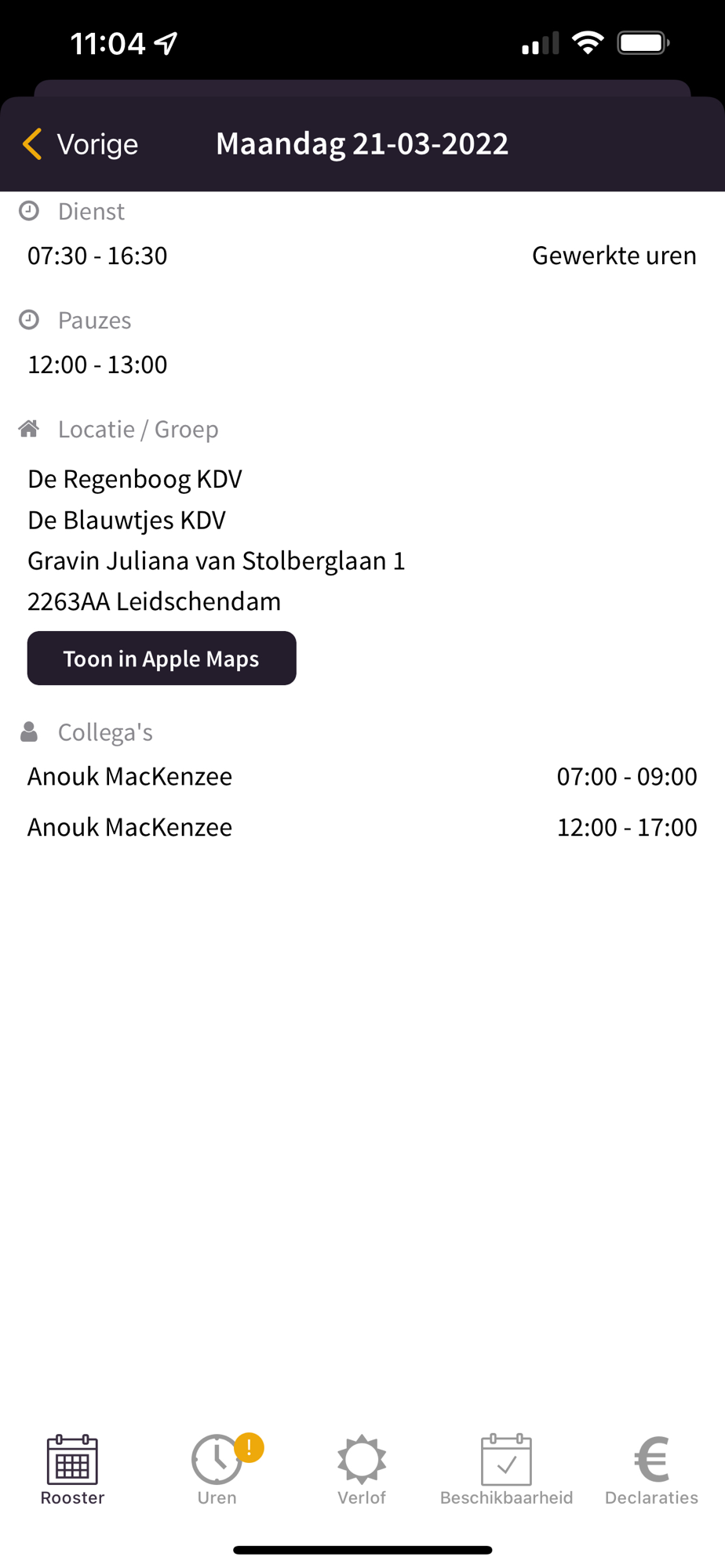 Extra gewerkt? Klik op het plusje voor een extra dienst!