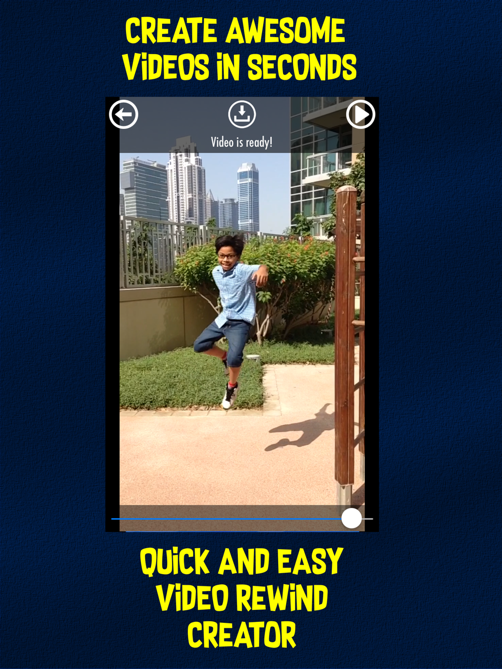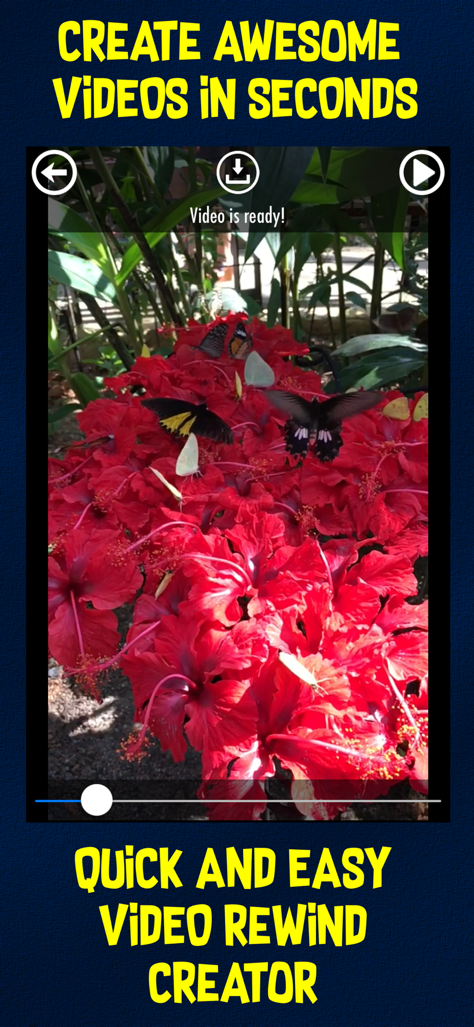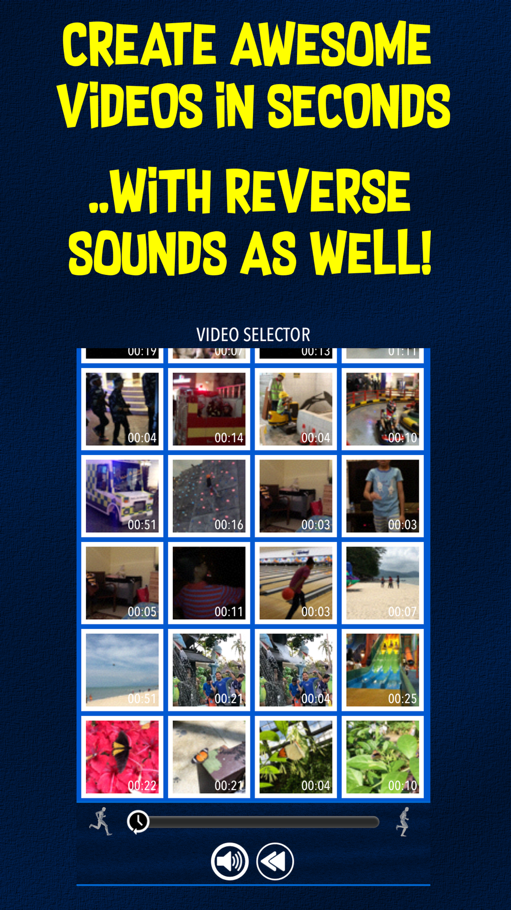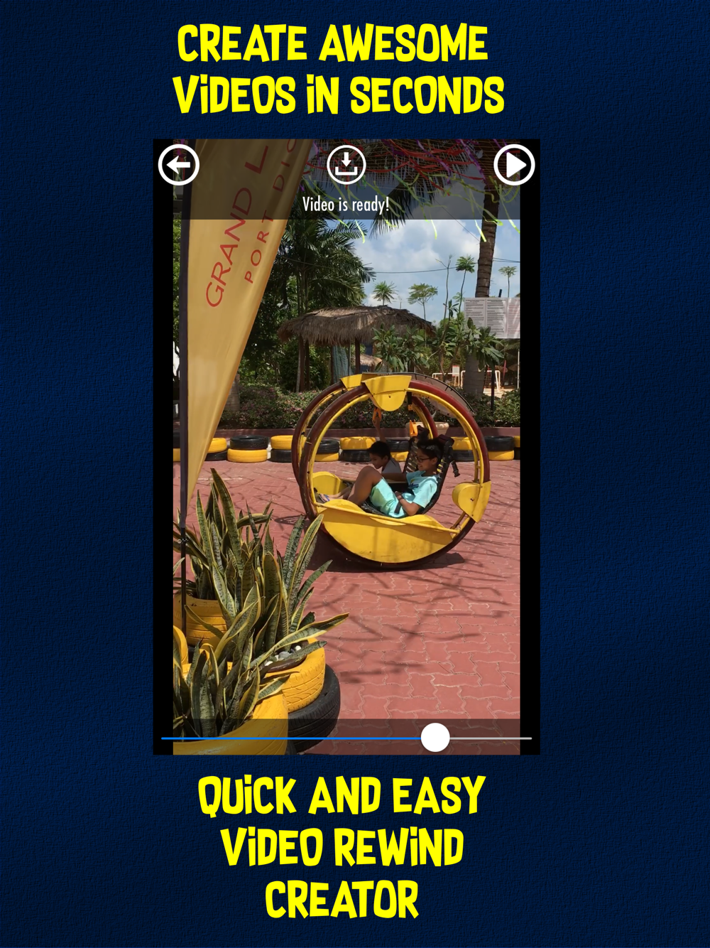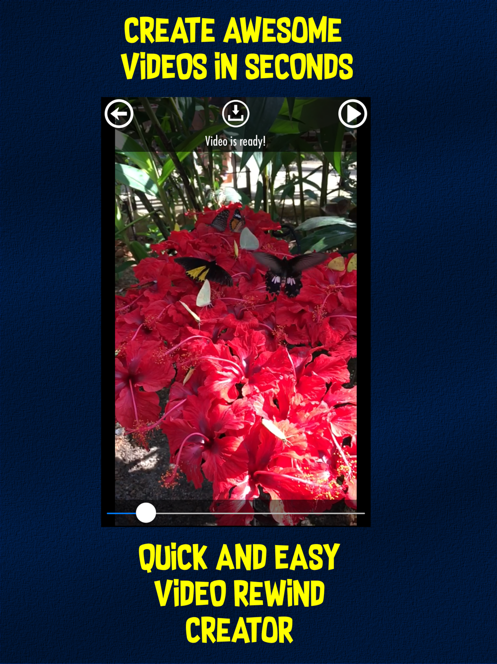 Video ReWind App allows you to re-create your recorded videos in reverse mode. It preserves the quality of the original video & the sound will be in backwards as well!