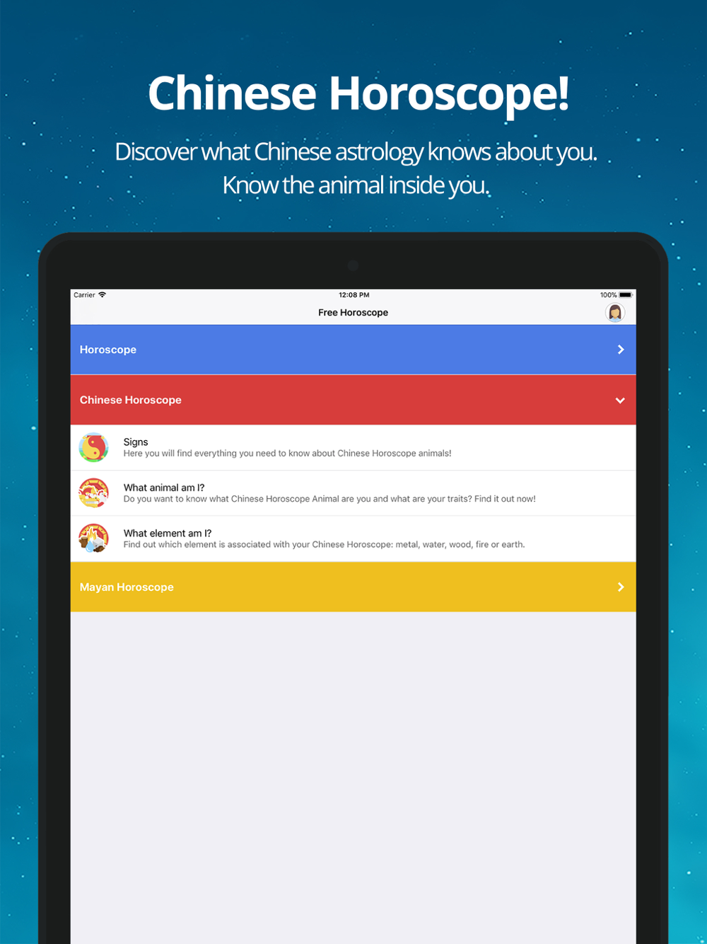 1. Zodiacal, Chinese and Maya horoscope all in 1 single App