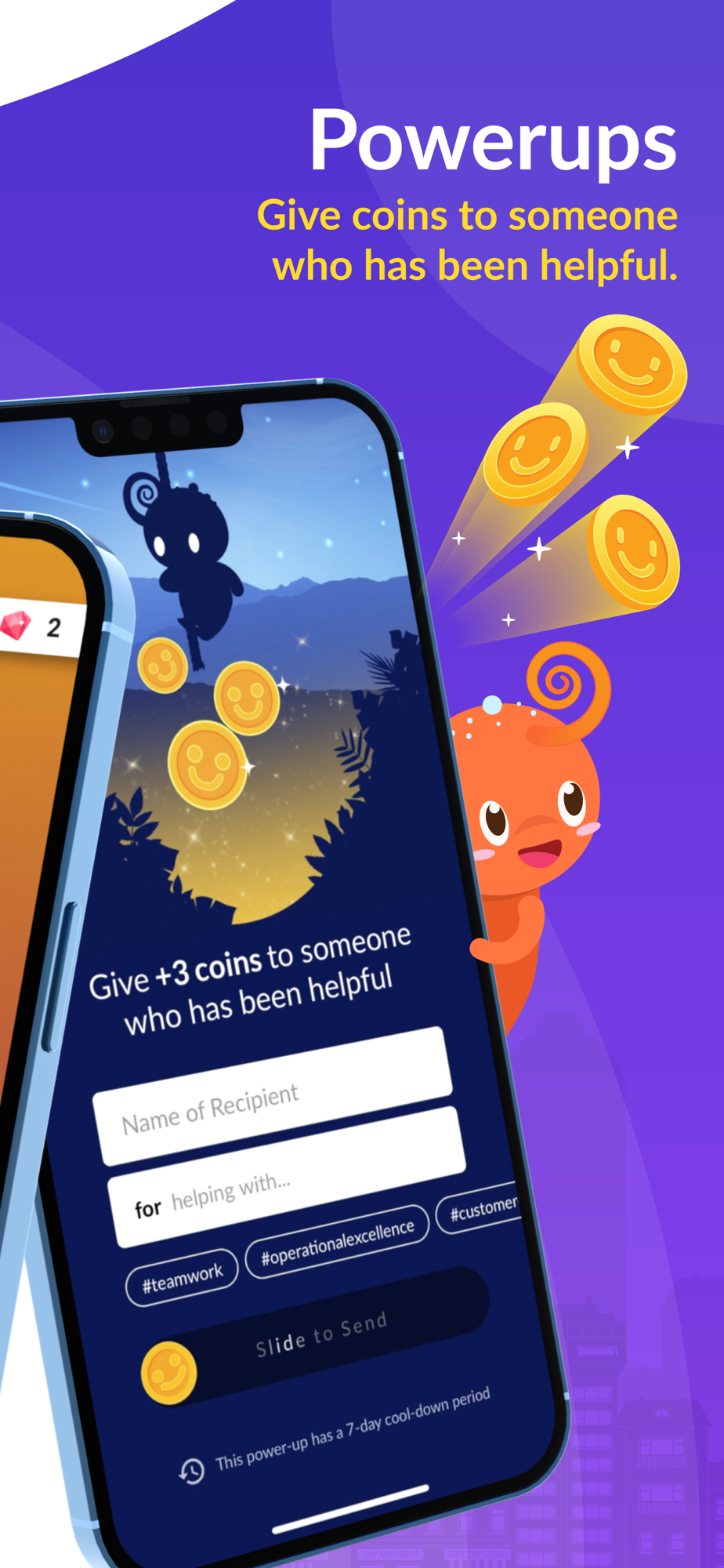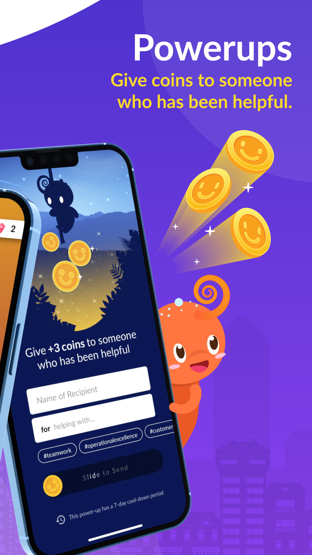 Earn coins and gems just from answering questions or from receiving recognition from your co-workers. Redeem special rewards with your earnings!