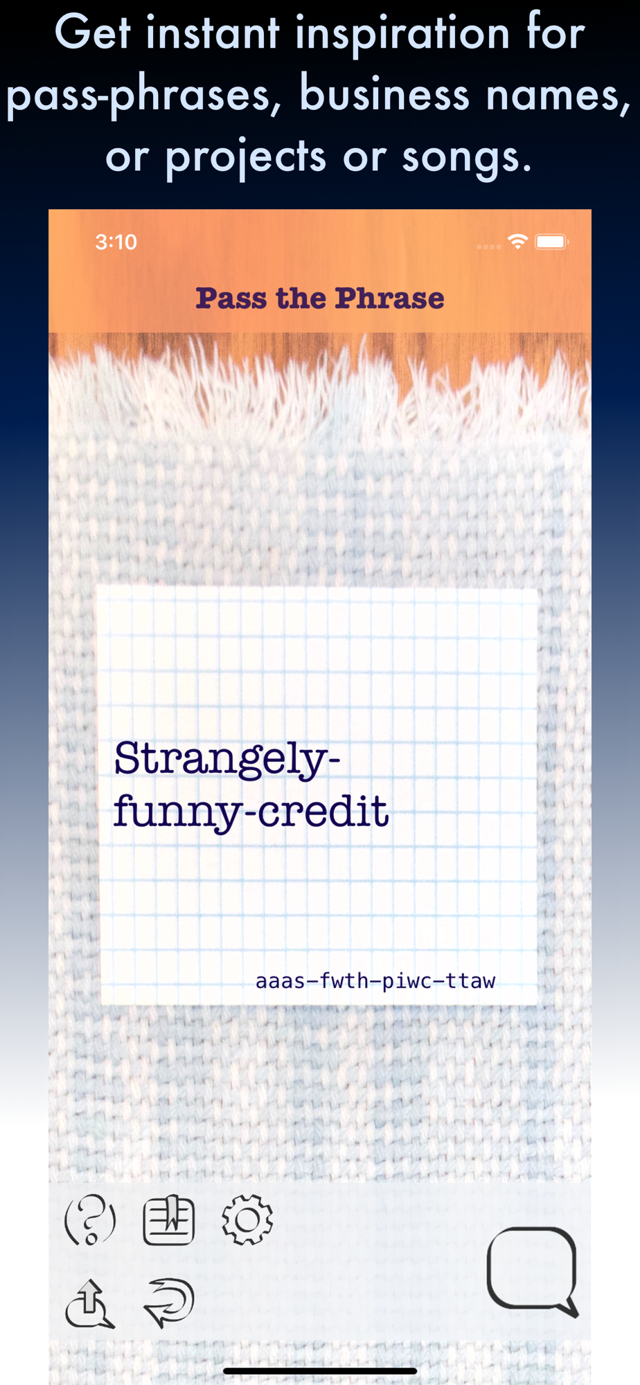 "Pass the Phrase" is an intriguing phrase generator for your iPhone/iPad.