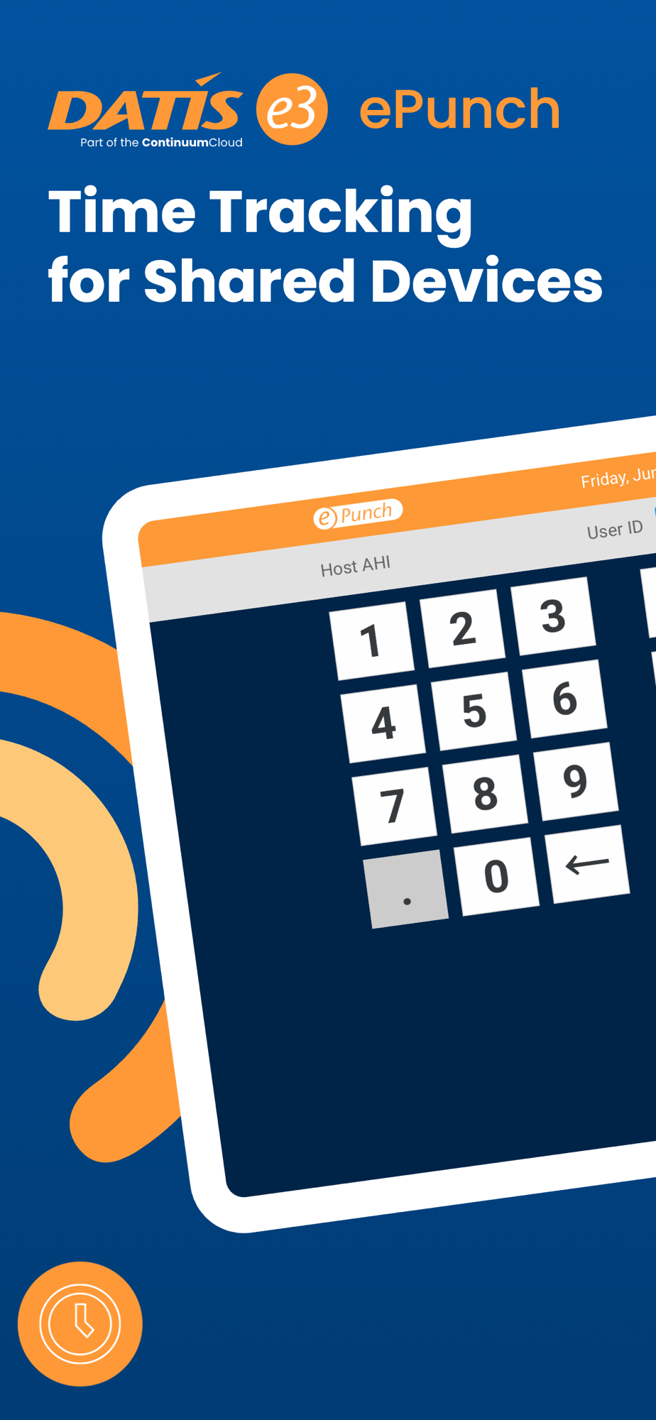The ePunch is an app for shared devices that provides an easy, efficient way to capture time & attendance at your organization. Easily punch in and out from tablets or other devices located at key locations. This time entry method is ideal for high traffic zones where employees need to quickly punch in and out while automatically recording their location and other key details for reporting.