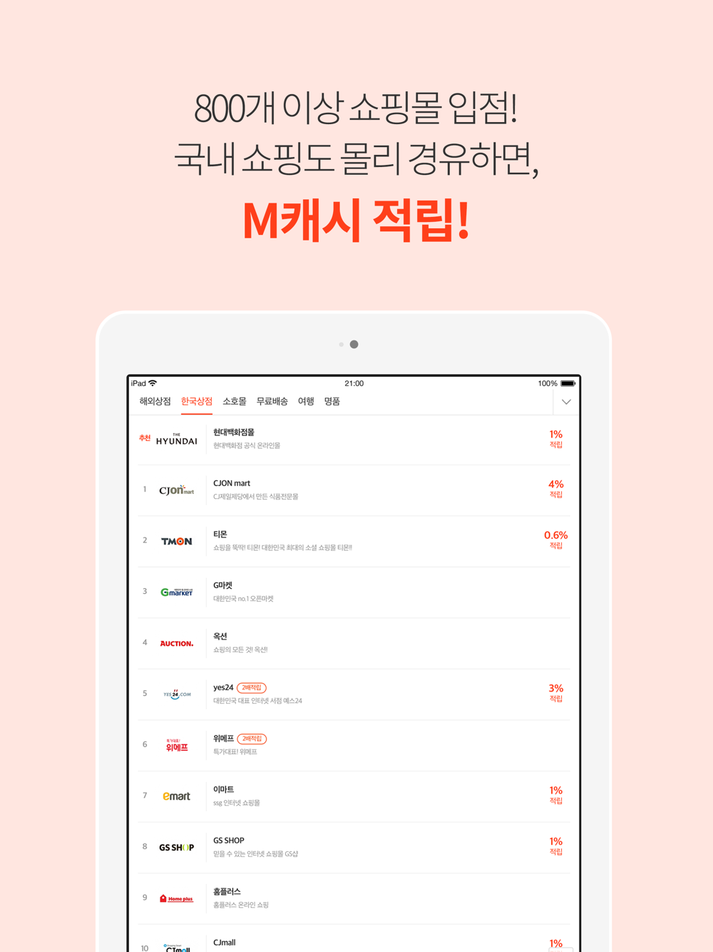 몰리에서 제공하는 약 800여개 국내, 해외 사이트에서 쇼핑하시면 최대 20%까지 캐시백을 제공해드립니다.