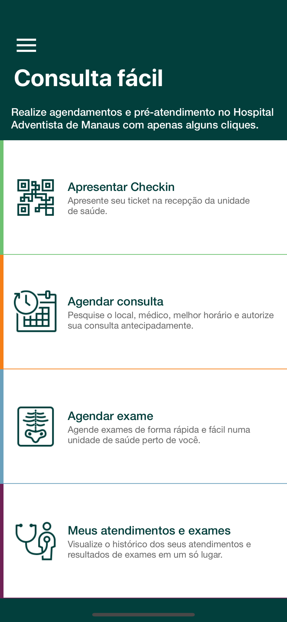 O Hospital Adventista de Manaus oferece o aplicativo Consulta fácil, que é a maneira mais prática de agendar consultas e exames com seu plano de saúde ou particulares. Encontre e agende sua consulta médica em instantes de forma simples e rápida, com uma interface intuitiva e prática, o Consulta Fácil te proporciona a melhor experiência no agendamento, evitando filas e agilizando seu tempo.