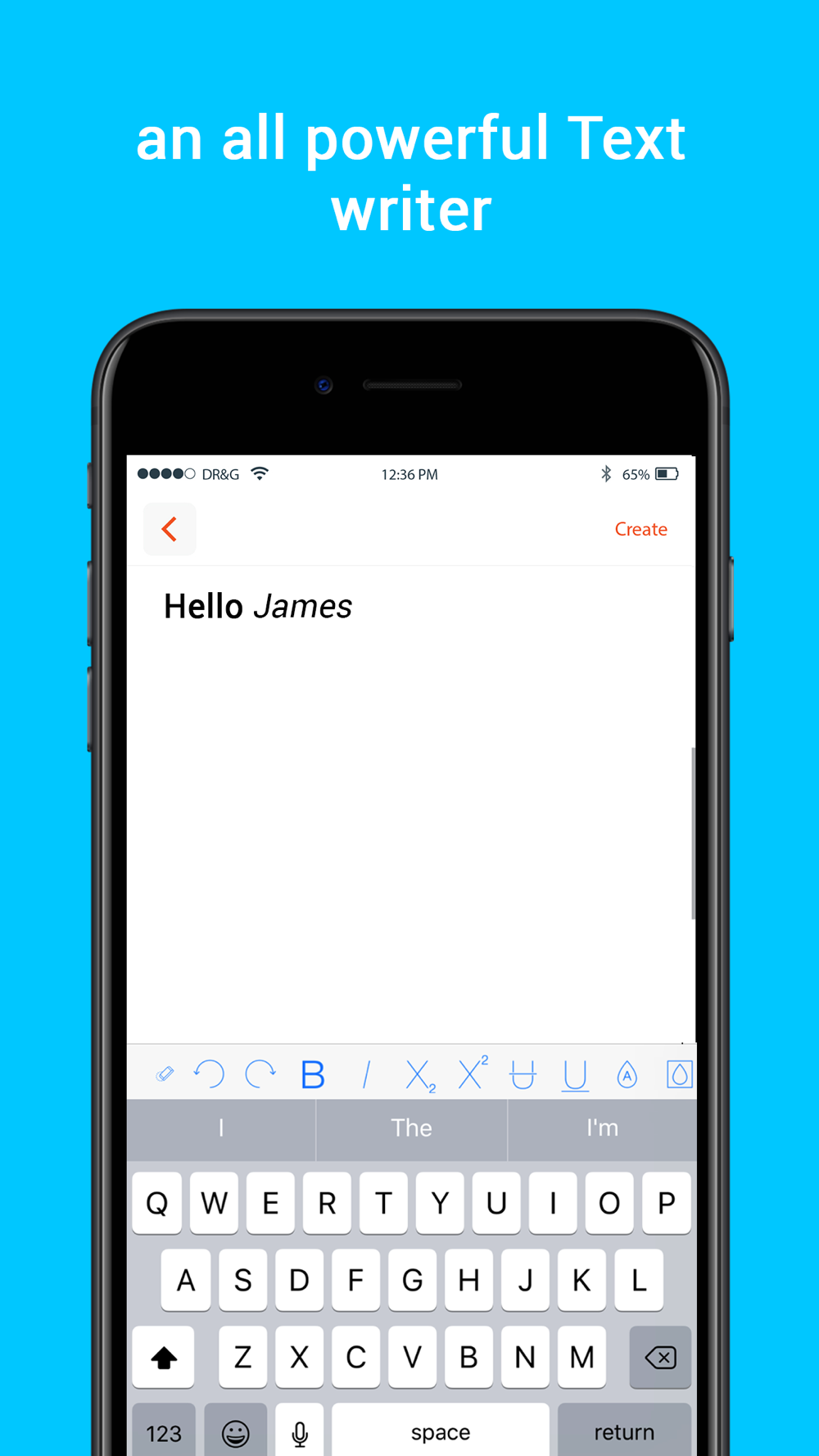 1. The app allows you to create a document using a text editor. Write notes, articles and other documents on your iPhone and iPad.