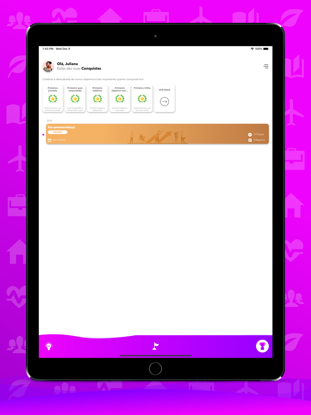 Já pensou em poder organizar suas metas e objetivos todos no mesmo lugar e ainda contar com recursos e dicas incríveis para te auxiliar a conquistá-los? Baixe o app 7waves e comece a planejar suas próximas conquistas.