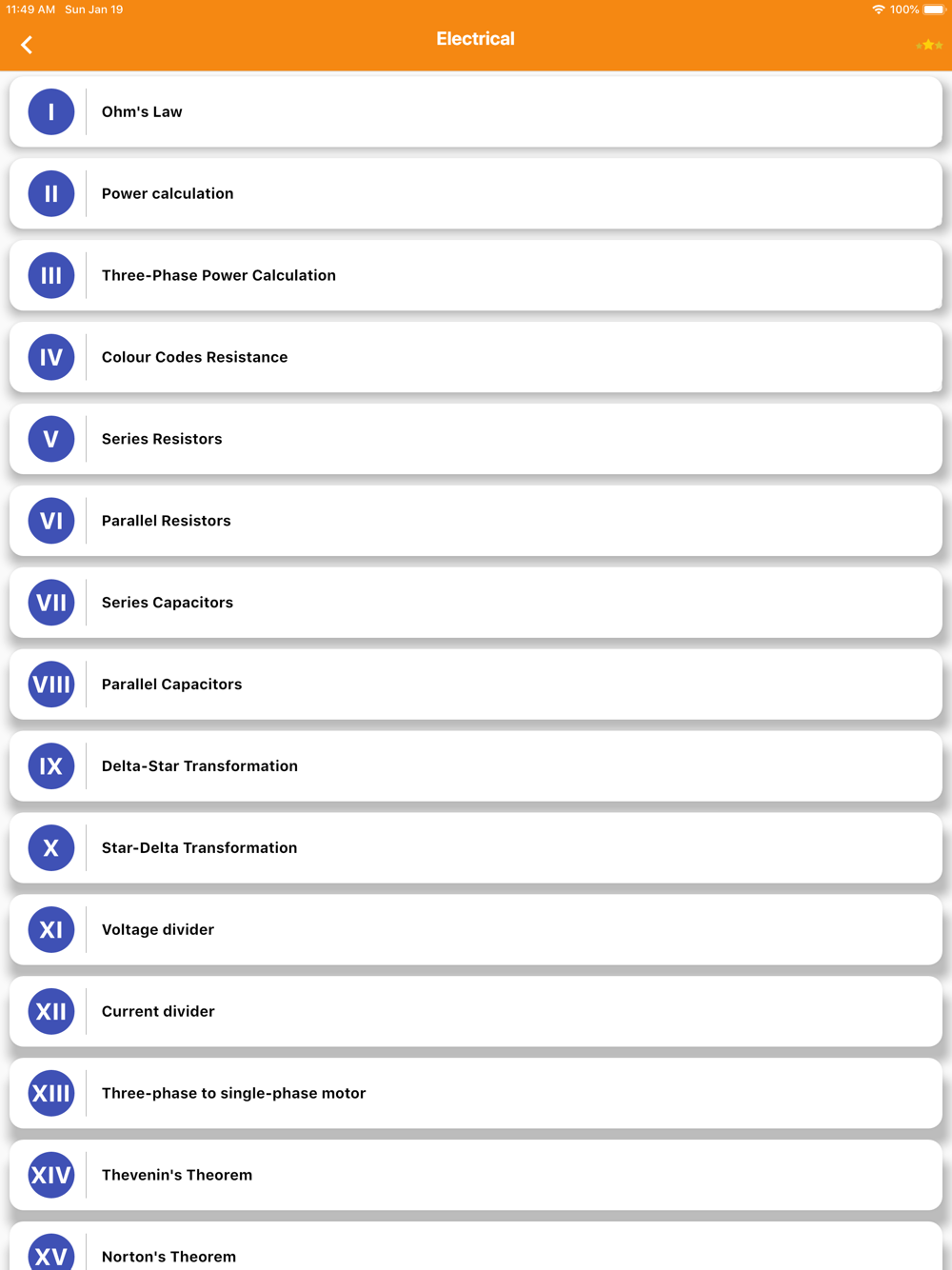ElectroMaster is divided into three sections: Electrical, Basic Knowledge and Advanced Electrical.