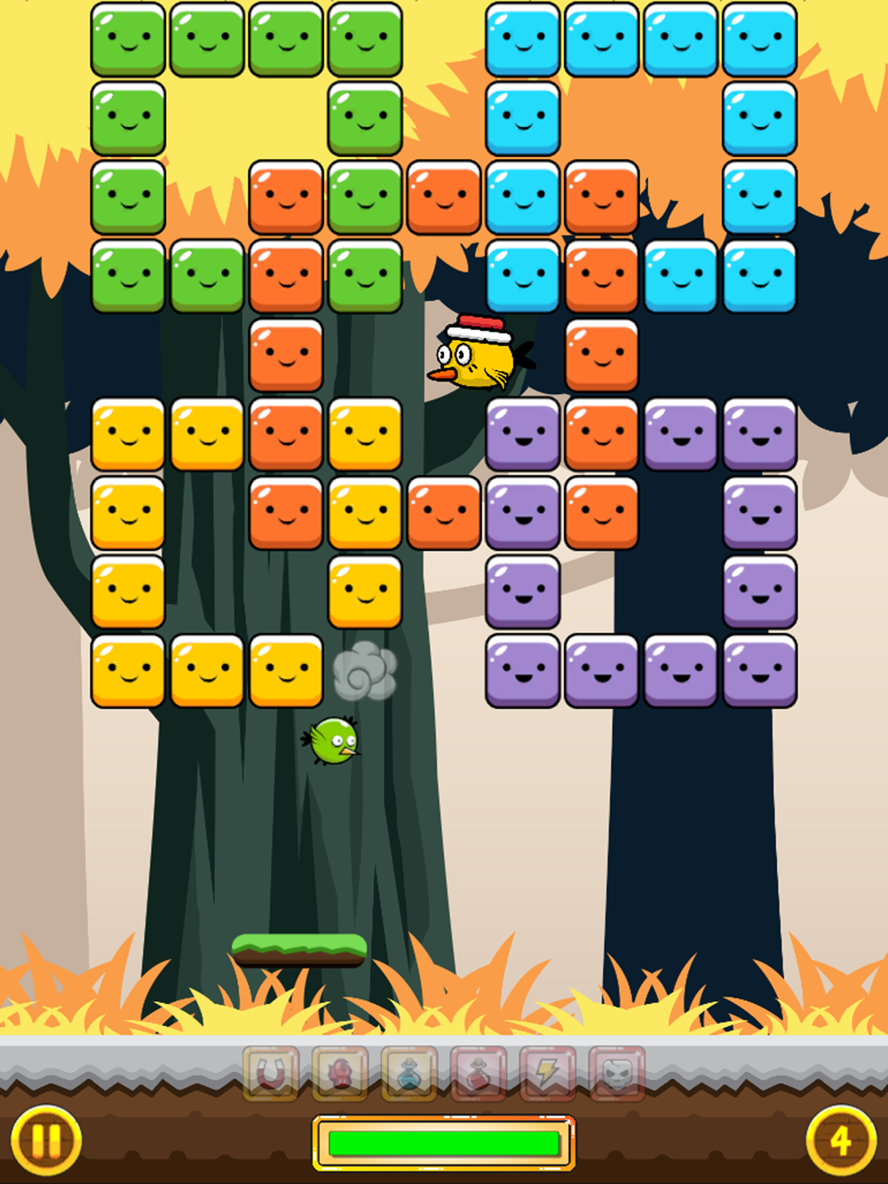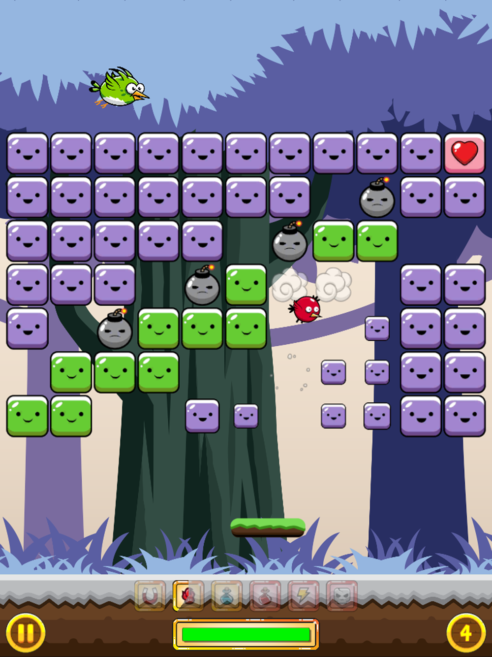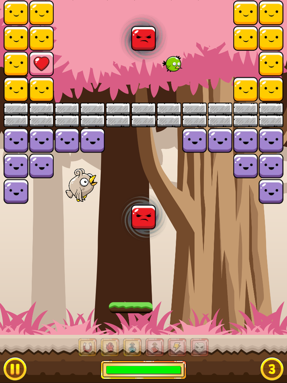 Slide your finger left and right to move the paddle, and lift your finger to launch the birdie ball. Bounce the ball off the paddle and into blocks and bosses, but don’t let it hit the ground! Catch falling power-ups using the paddle to gain extra lives, a second birdie ball, a bigger paddle, and many more!