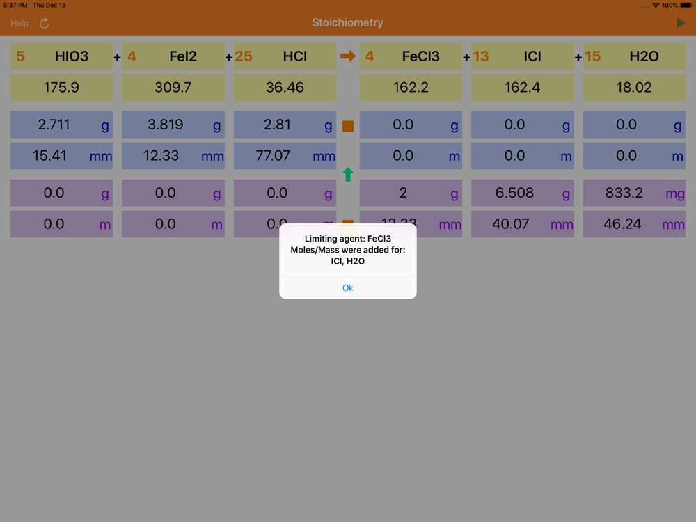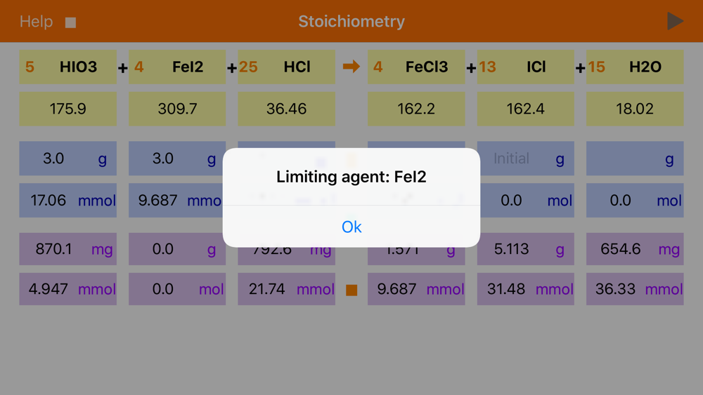 Stoichiometry is an ultimate tool for balancing chemical reactions, finding molar masses, moles and actual masses of reactants and products based on their chemical formulas, stoichiometric coefficients and any quantitative data provided, that available on Apple Store for iOS and Mac .