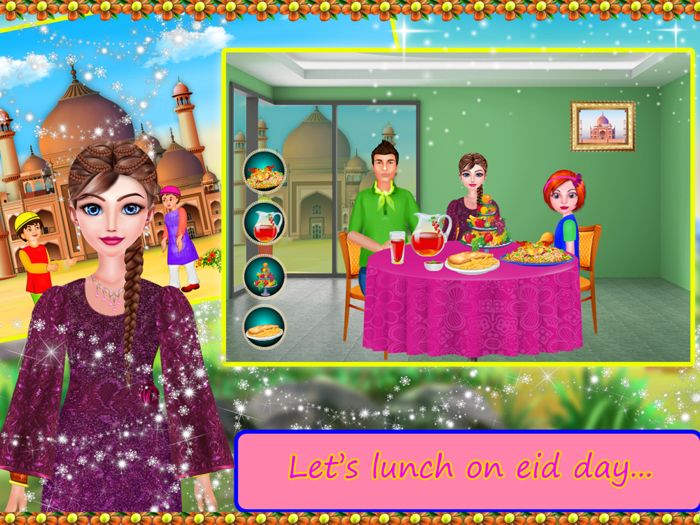 It’s time to celebrate Eid day with families and friends. Different types of dishes have been cooked by kitchen lady. Help her to serve on dining table. Download this special Eid day celebration game and enjoy a real atmosphere of happy Eid.