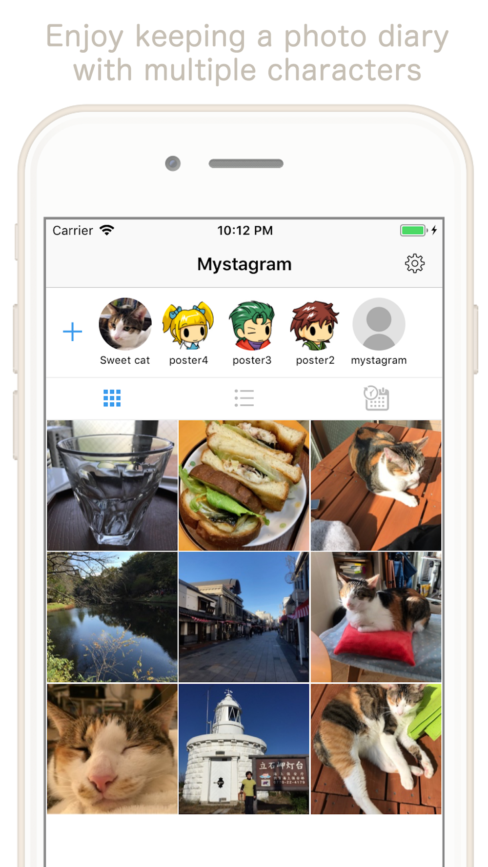 Enjoy keeping a private photo diary with multiple characters!