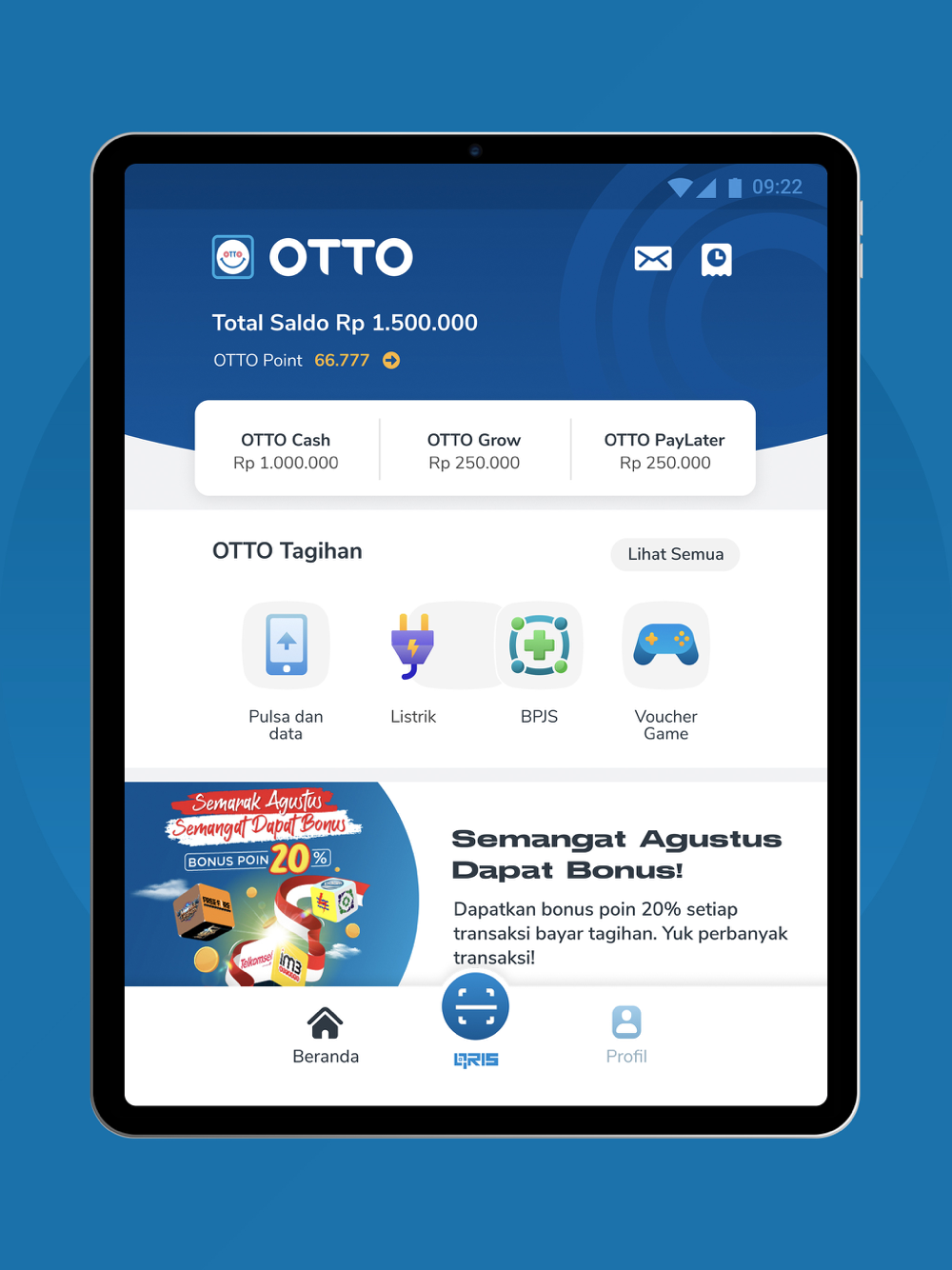 OTTO adalah aplikasi digital di smartphone sebagai solusi keuangan yang memudahkan pengguna dalam mengelola keuangannya, mulai dari transaksi pembayaran, pembelian, transfer, hingga pencatatan transaksi keuangan dan rekomendasi solusi keuangan yang sesuai dengan kebutuhan pengguna.