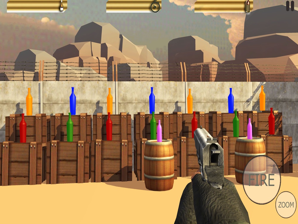 Frontline Bottle Shoot 3D is next stage of bottle shoot 3d. The game is the best bottle shooter game of its kind because it is specially designed in military environment. The futuristic concepts of the game is for every person who has adrenaline in blood and want to boost up their energy to join army, they must first of all play Frontline Bottle Shoot 3D and set their target and shots.