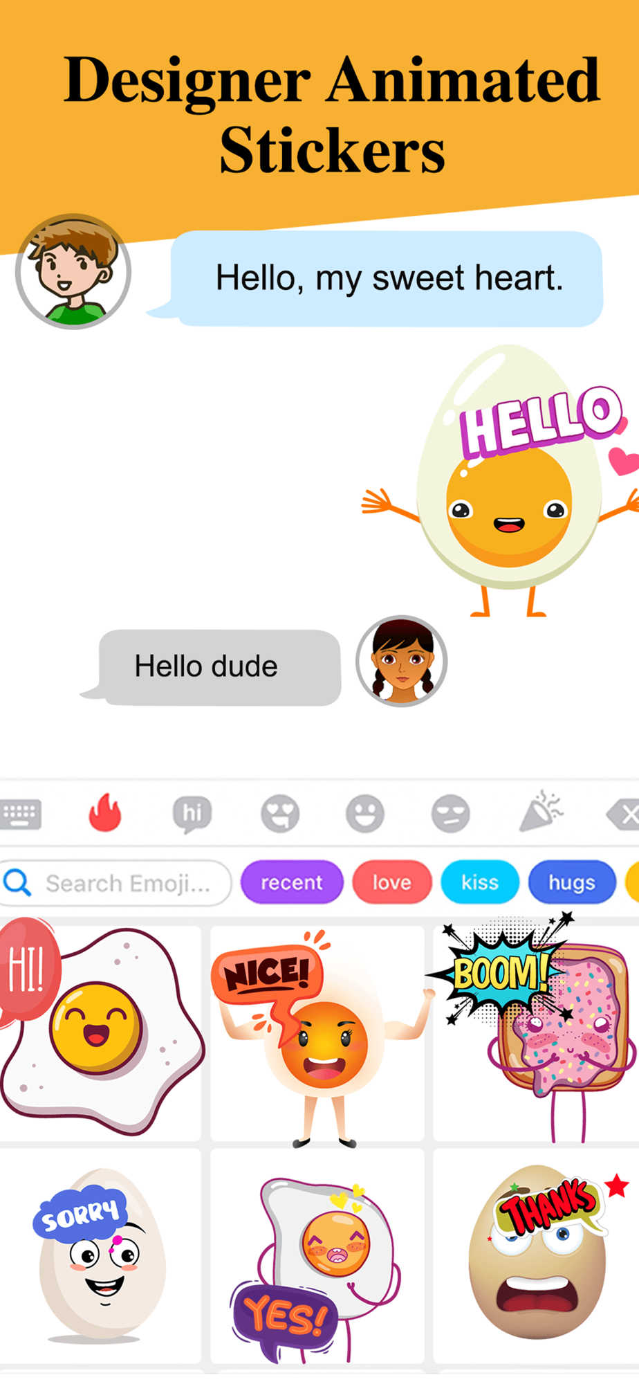 These awesome Animated Egg Friends stickers will for sure entertain you .Send them to all your friends and put a smile on their face.Download Today!!!