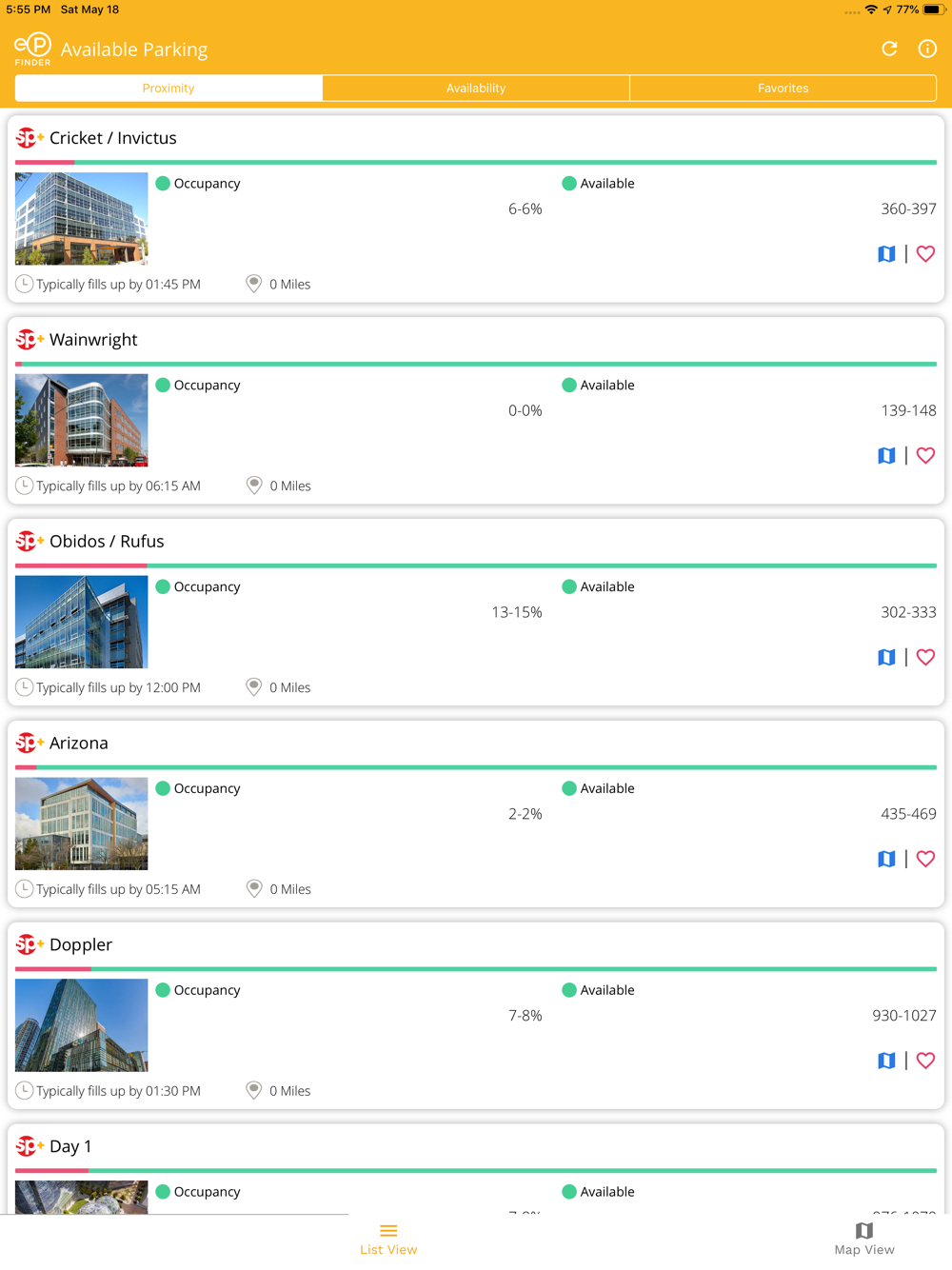Powered by Sphere™, the eP Finder App provides a way to display real-time occupancy and parking availability to the public. For integrated locations onto the eP Finder, the mobile app provides a quick view of all the locations available for parking or your specifically saved SP+ Locations.
