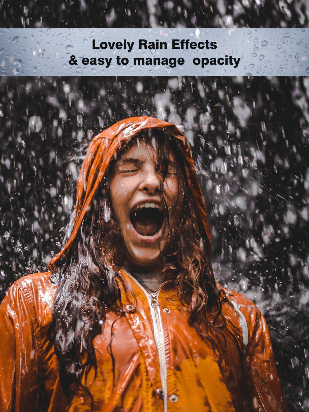 * Drag, zoom in, Zoom out Rain effects on your photos and set that on your photo with your needs.
