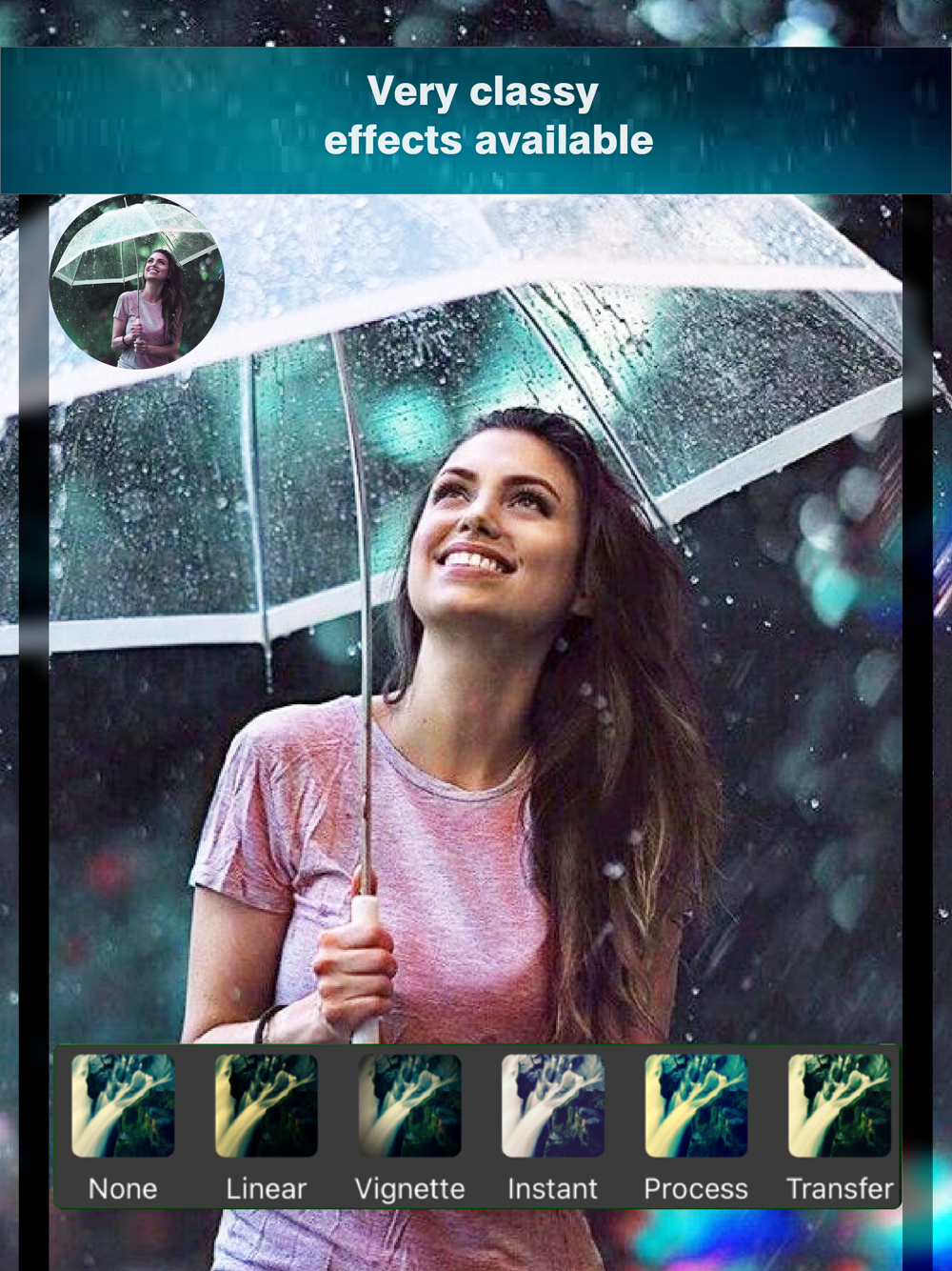 Rain Effect Photo Editor is the best photo editor app for iOS for making lovely Rain effect & Frame for original photo with numbers of beautiful colours and monsoon effects. With using this editor, We ensure that you are feeling in rainy season with unforgettable memories. Applying rainy effects on your original photo and make them more beautiful.