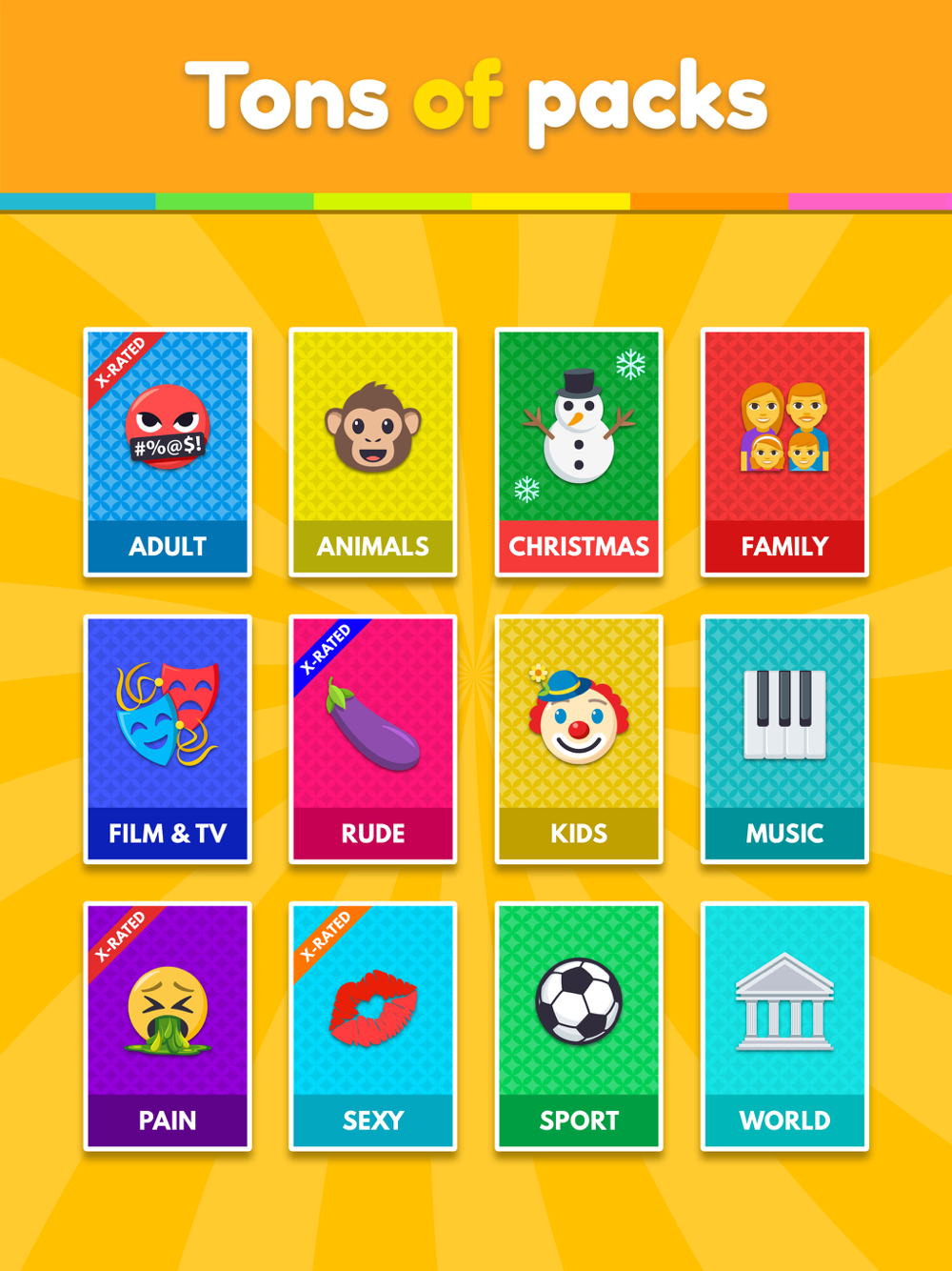 Choose from three main categories crammed with hundreds of cards to play with and unlock specialist subjects - Sport, Music, Entertainment, Rude, and many more to keep the party going!