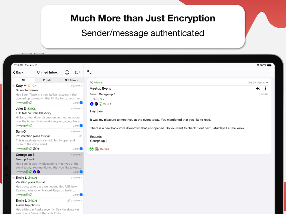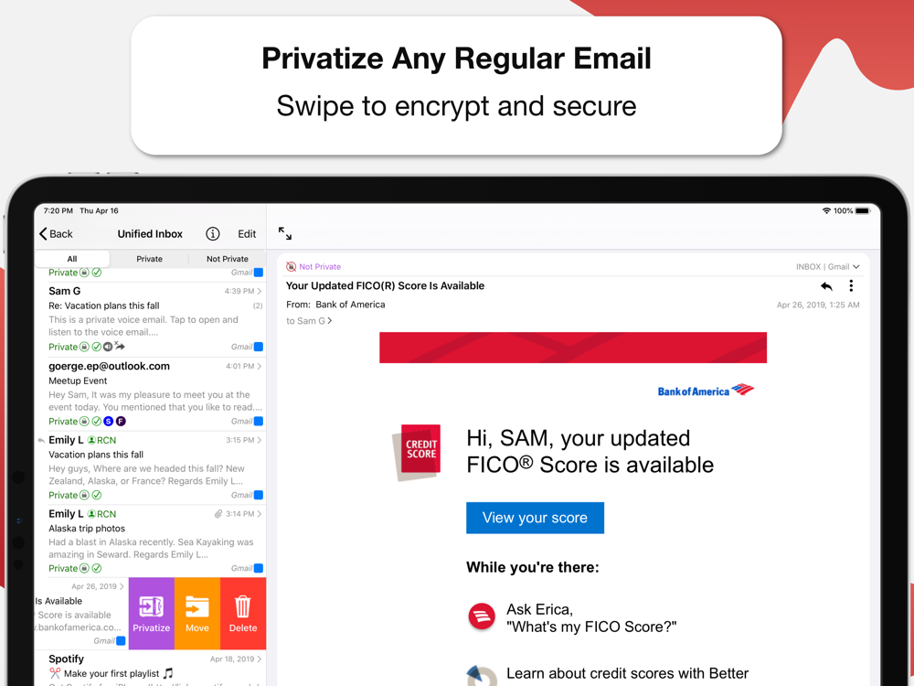 EPRIVO is much more than encrypted email. EPRIVO is the only private email service with a wide range of fine-grained privacy controls - allowing future control in both recipient devices and cloud. It is also the only private email service that enables you to send voice and text emails using your existing IMAP email addresses (Exchange accounts require IMAP access). You can also send secure emails to non-EPRIVO users. Ideal for secured communication for employees working remotely and consumers.