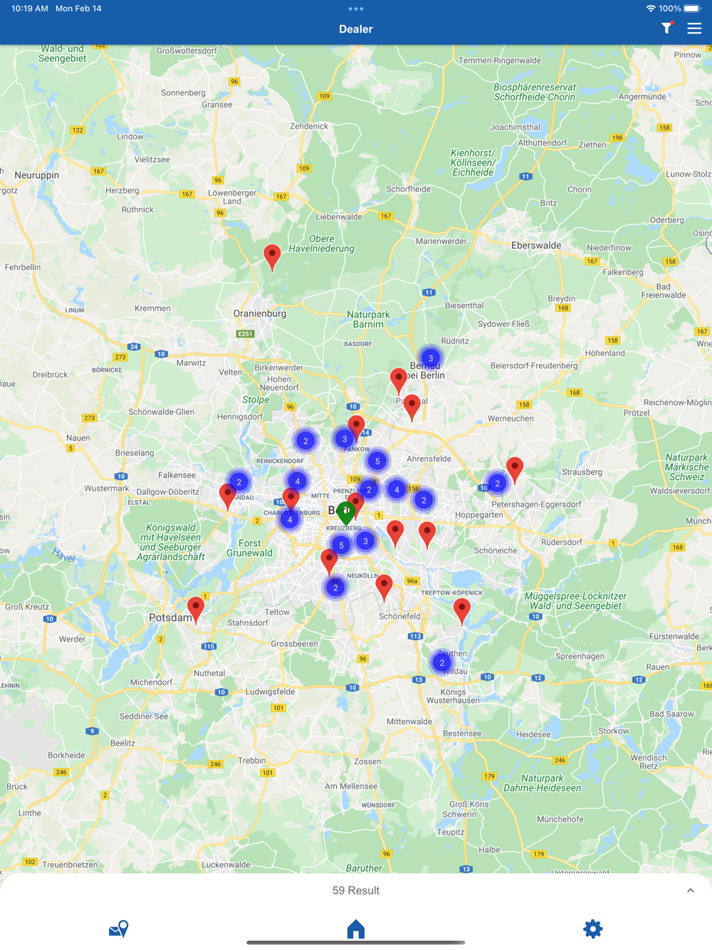 The icon "Locations" helps you to conveniently find your nearest ATE partner via route planner. By request, including detailed information about the selected company.