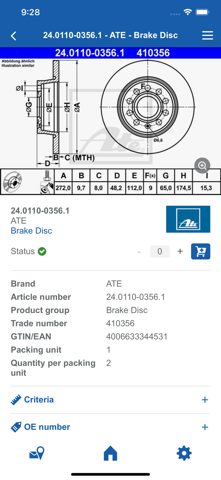 The app is based on the extensive ATE catalog database with the original data of the manufacturer including article information and product images.
