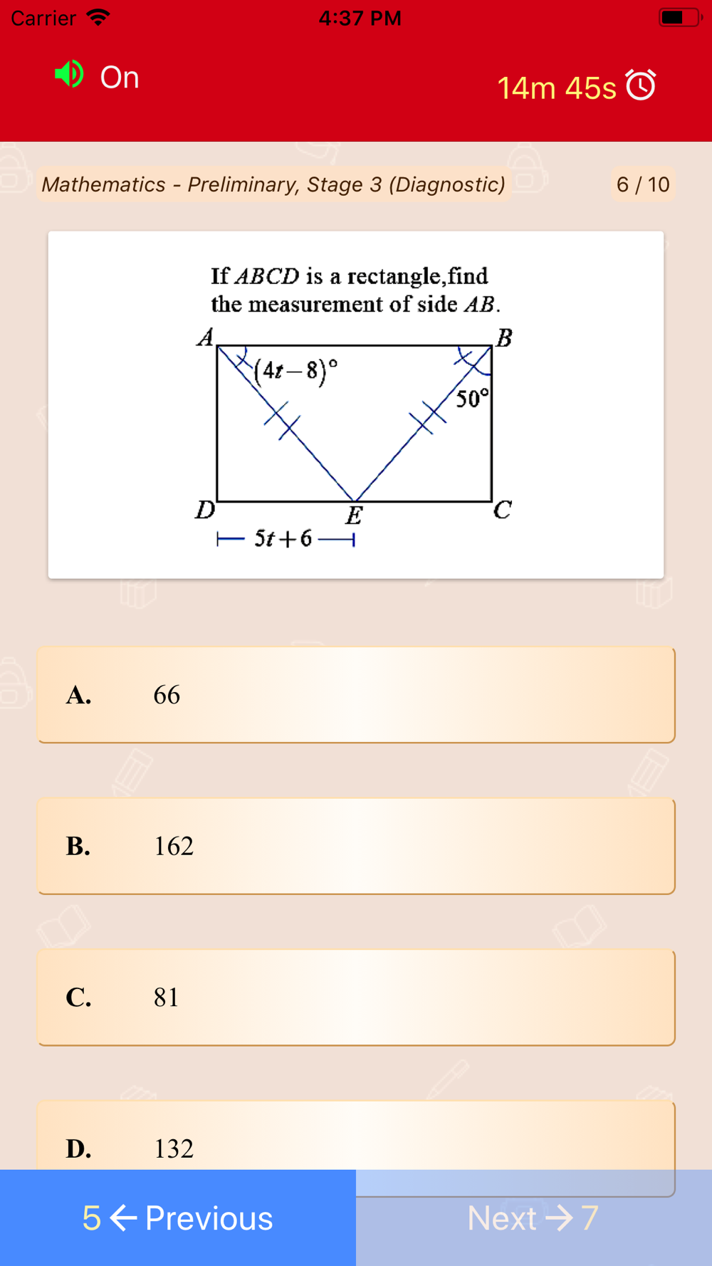 The app is divided into 3 major parts (Diagnostic, Practice and Simulation) with 4 subtopics (Mathematics, Science, Language Proficiency and Reading Comprehension) in each part.