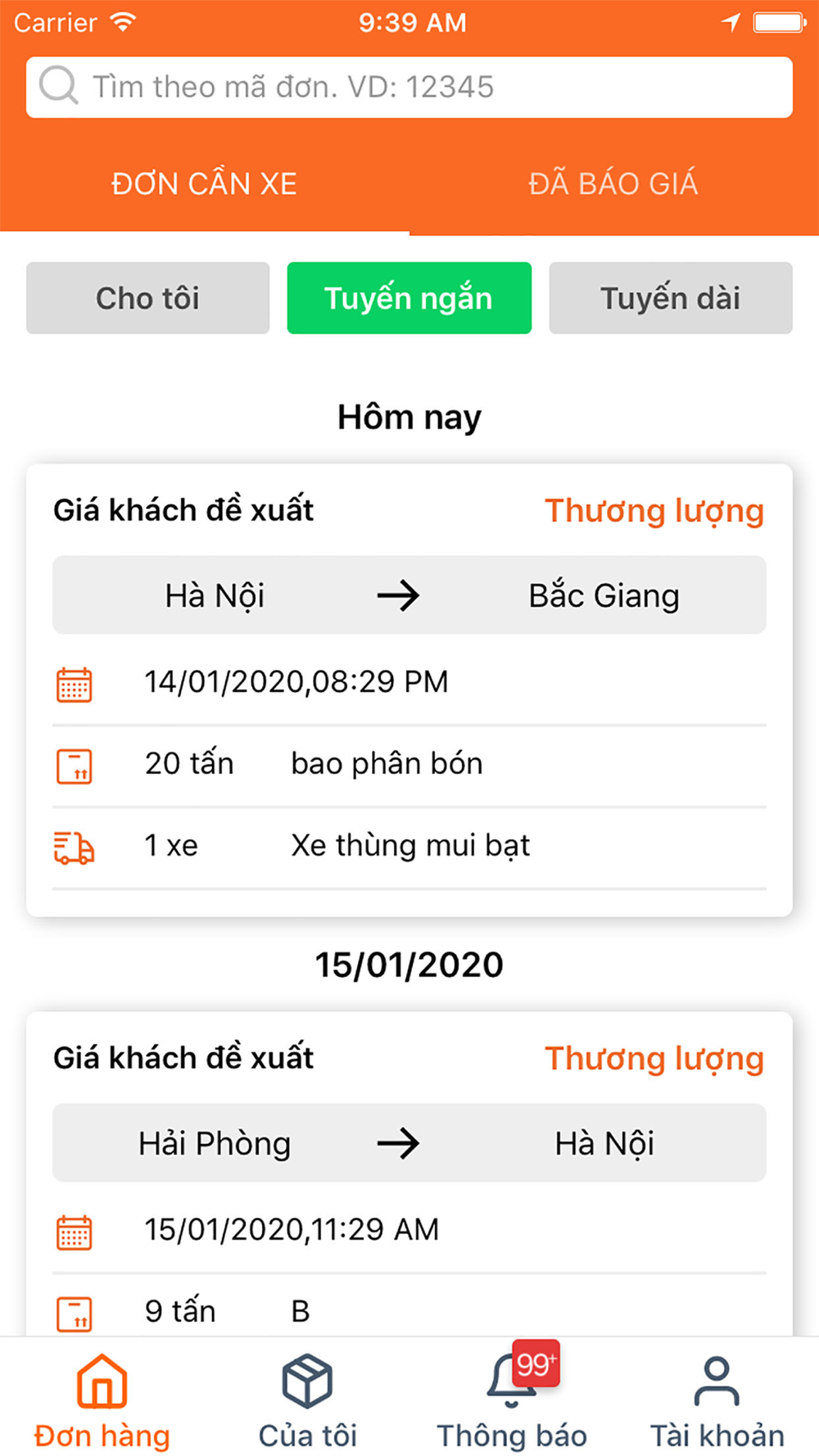 - Hơn 200 đơn vận chuyển hàng hóa bắc nam được cập nhật mới thường xuyên.