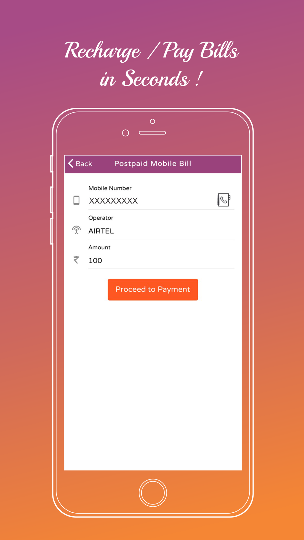 Recharge your prepaid mobile or pay bills of postpaid mobile for Airtel, Vodafone, Idea, Reliance, BSNL, Tata, Aircel, MTS, Uninor, MTNL.