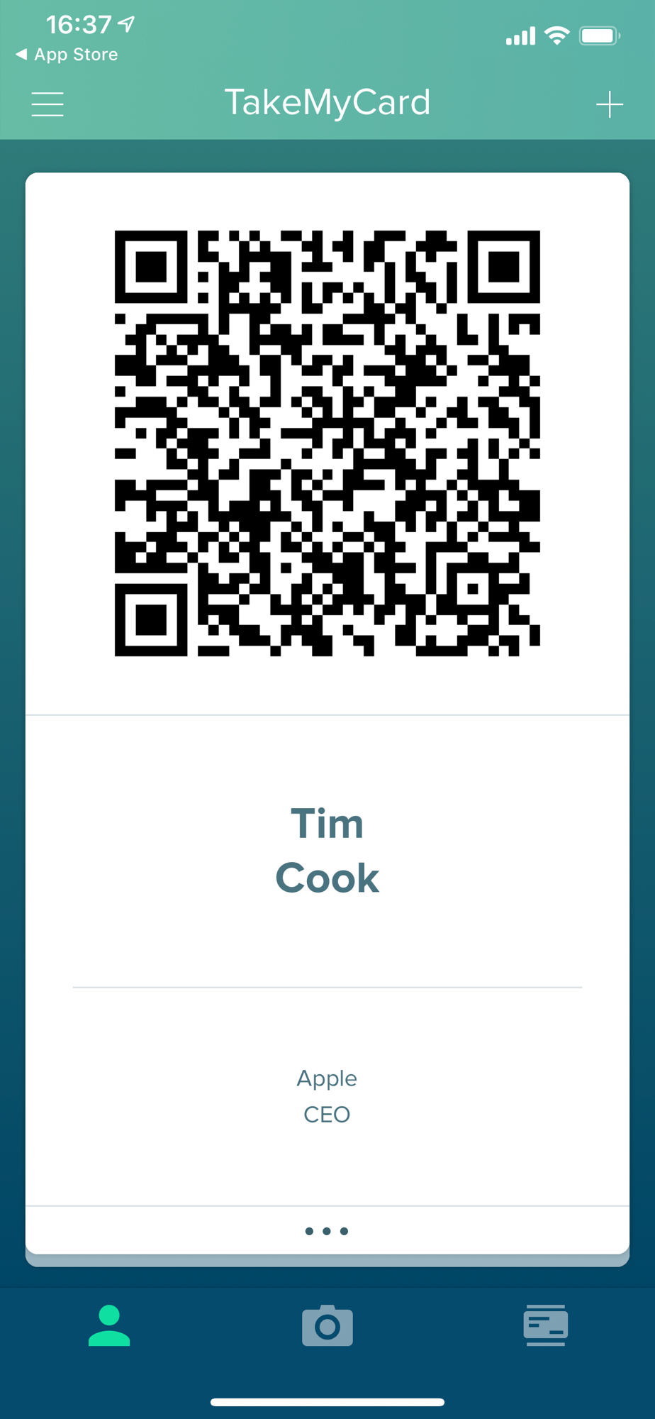 - Share your card with a QR code or via any email / texting app (whatsapp, viber, etc) as a generic contact file (.vcf)