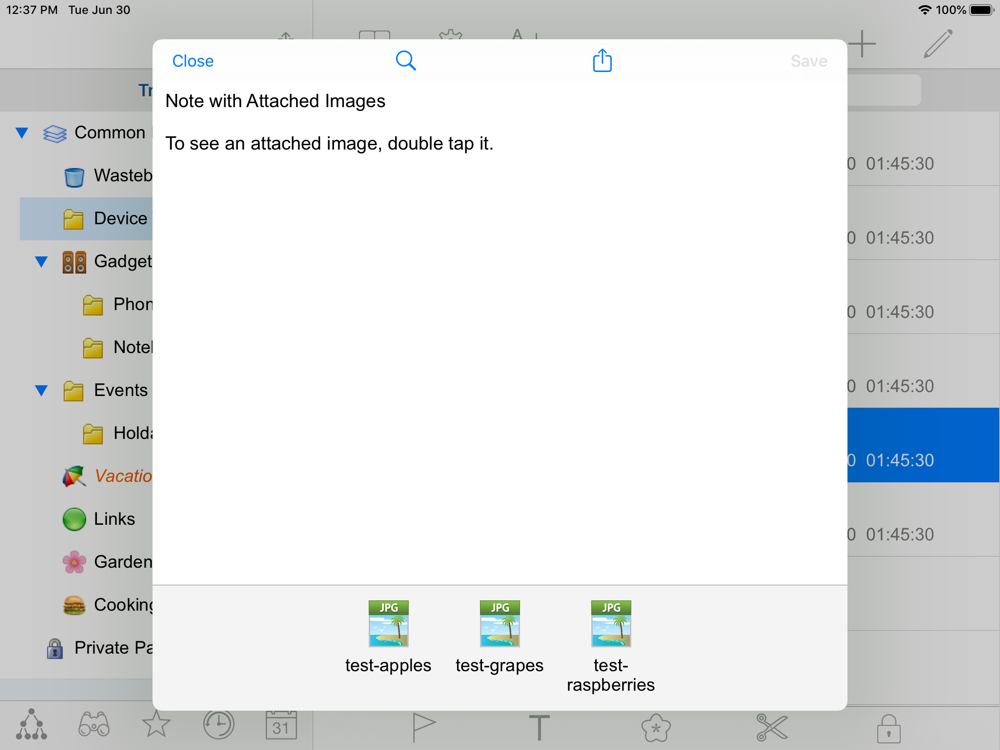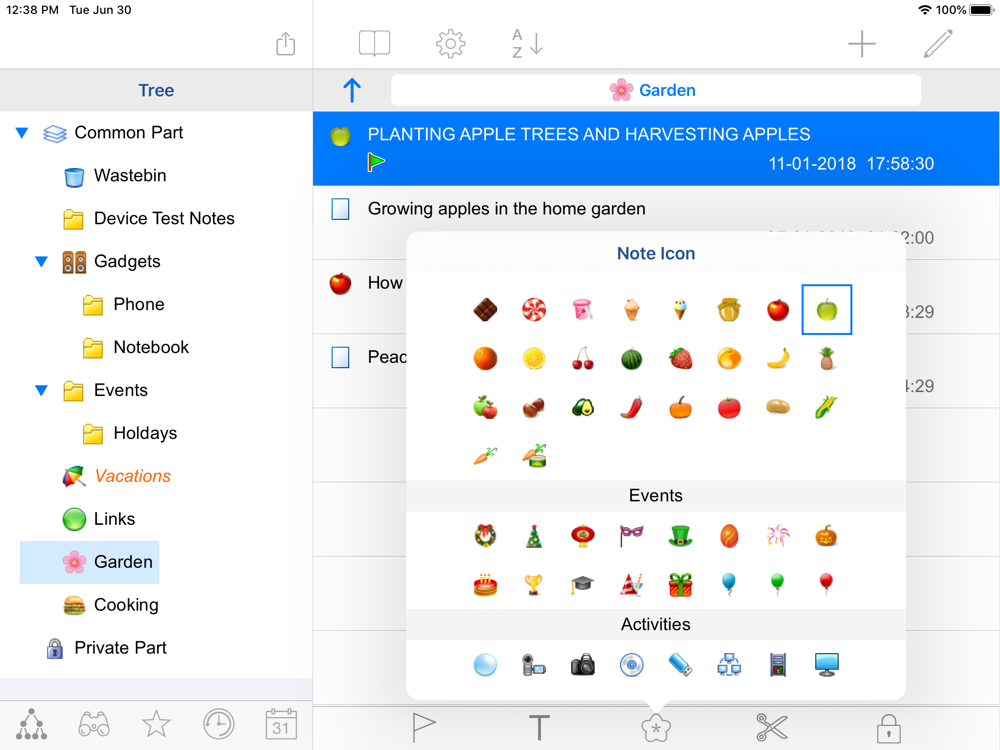 Tree Notebook runs on an iOS device (iPhone or iPad). Besides, there is a counterpart for OS Windows which can be synchronized with up to three iOS devices via a local Wi-Fi network.