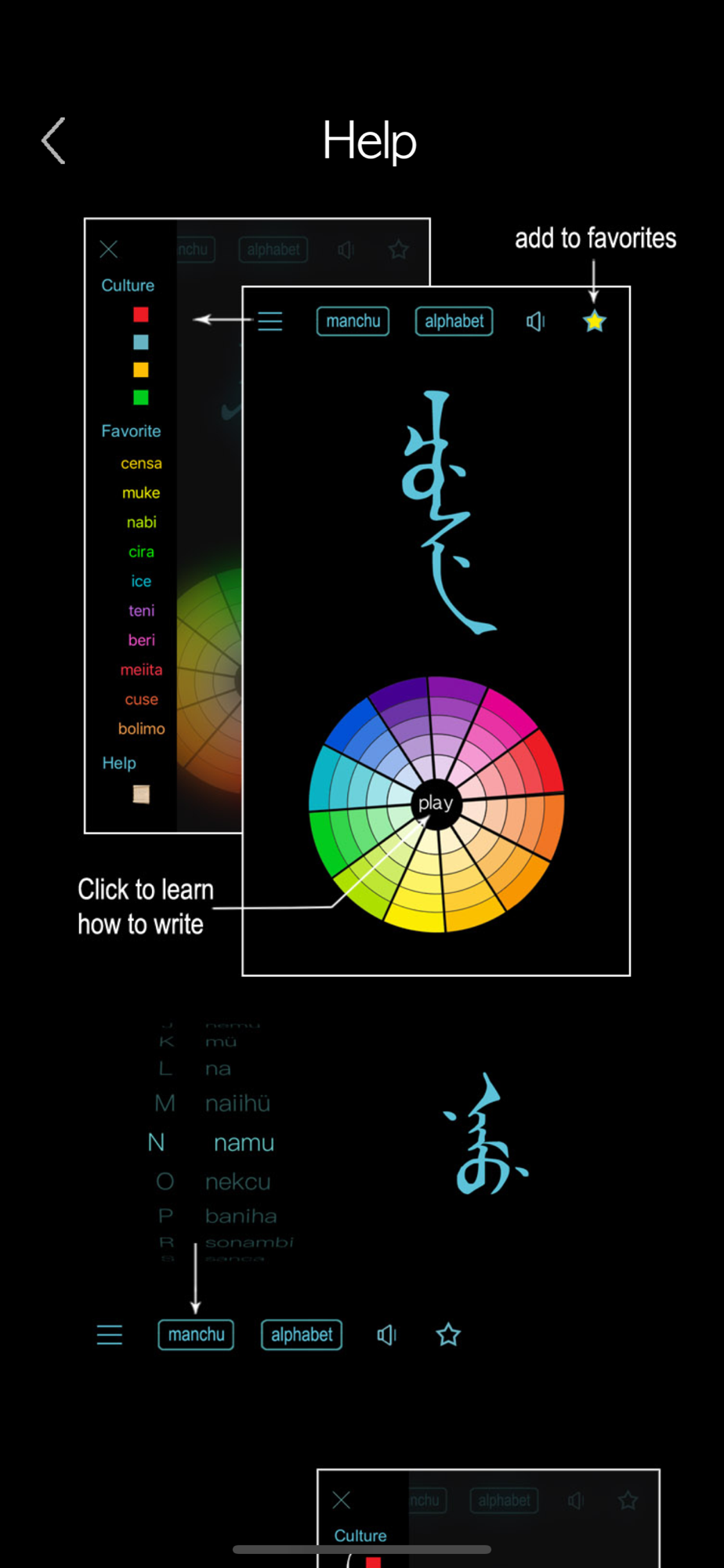 You can also select the word in alphabetical order by clicking “manchu” in the menu bar.