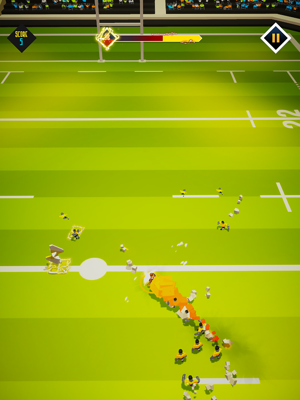 In the grim, dark future, robots have seized control of the world, and the fate of humanity rests on the (large) shoulders of one rugbyman. For some reason, you've got to win in an endless rogue-like game of rugby, against an army of evil bots.