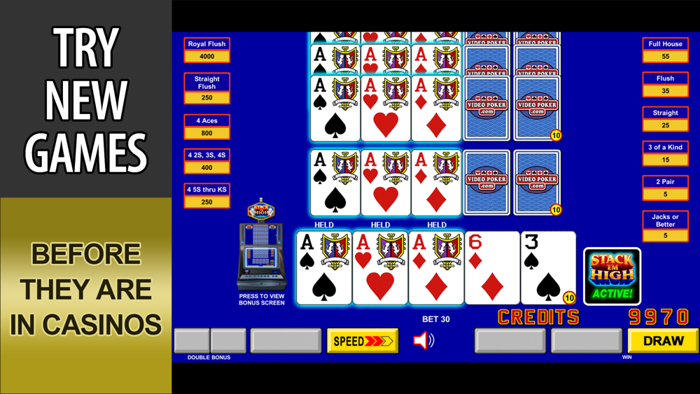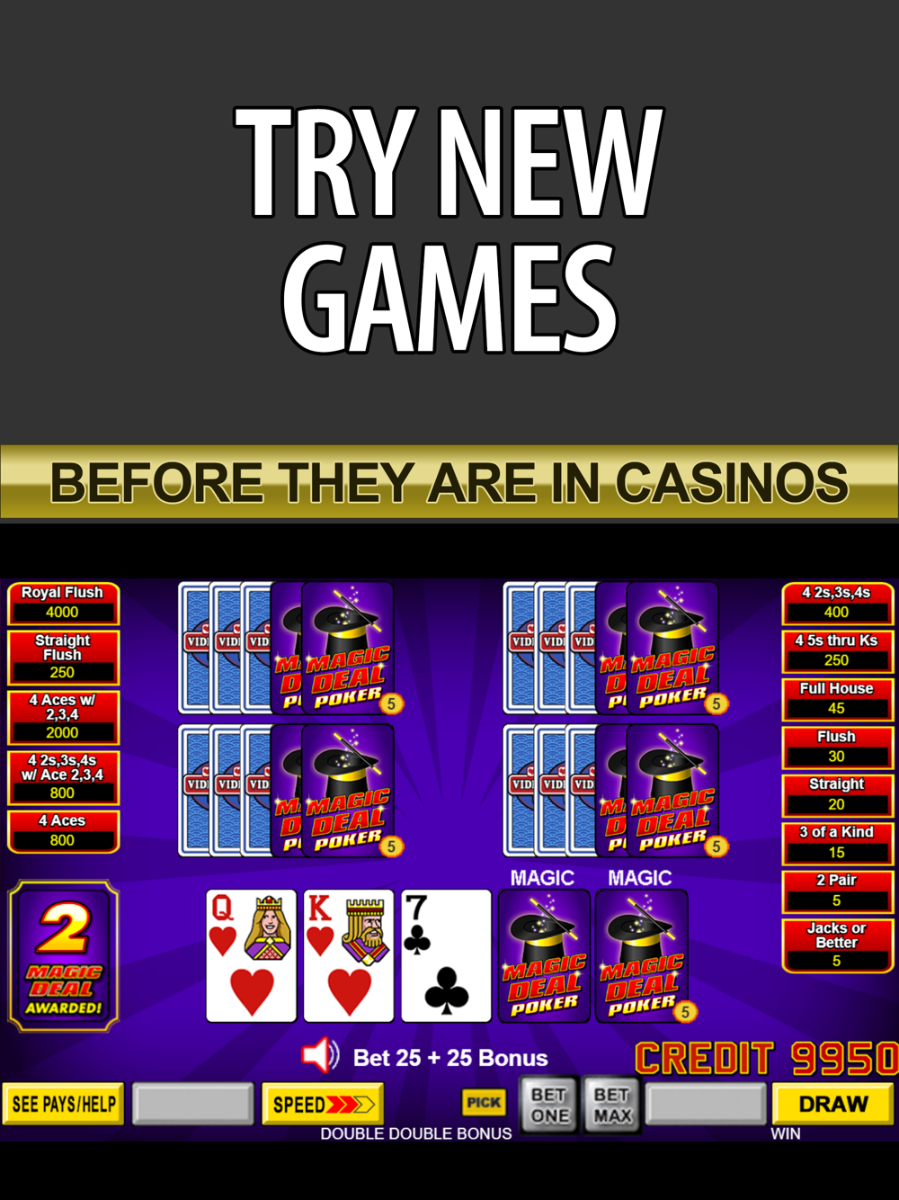 This is the only app with all the most popular video poker games. Choose from all time favorites like Triple Play Poker, Super Times Pay Poker, and Ultimate X Poker.