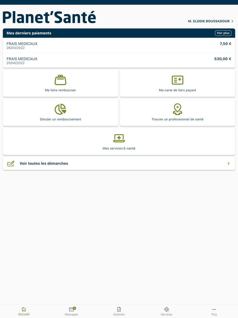 - Retrouvez une information complète sur votre niveau de garanties, le montant de vos plafonds de remboursement et le suivi de leur consommation annuelle.