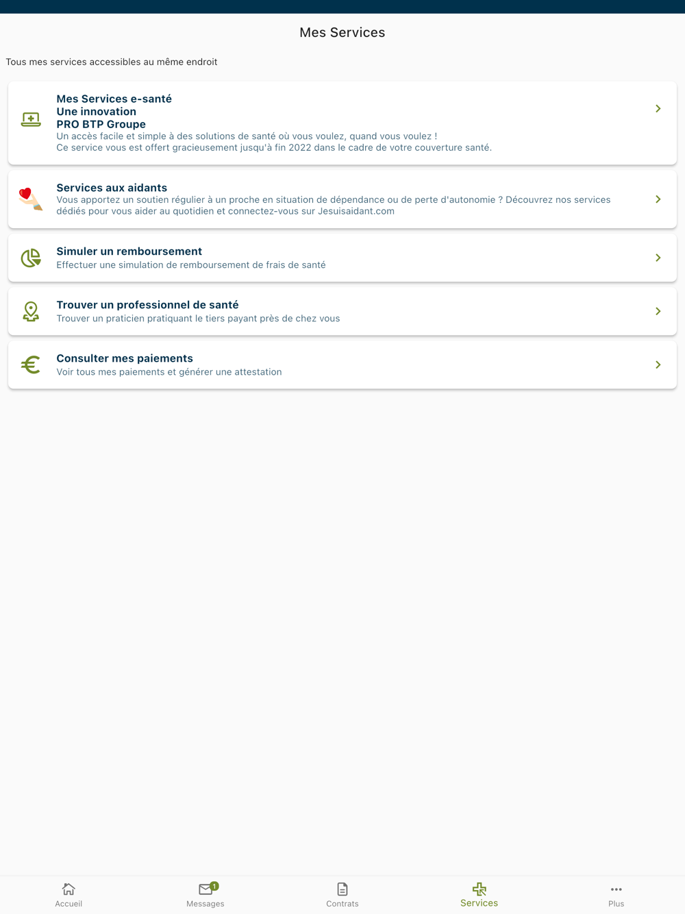 - Accédez à votre carte de tiers payant directement dans l'application. Vous pouvez la présenter directement aux professionnels de santé via votre smartphone.