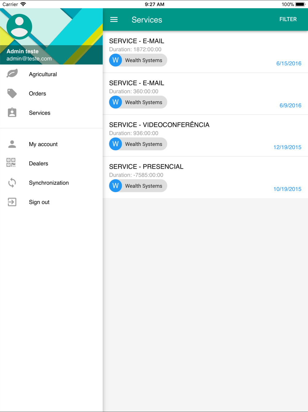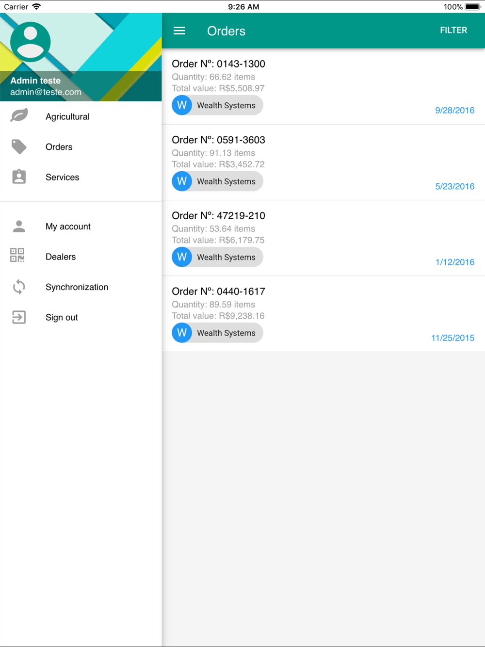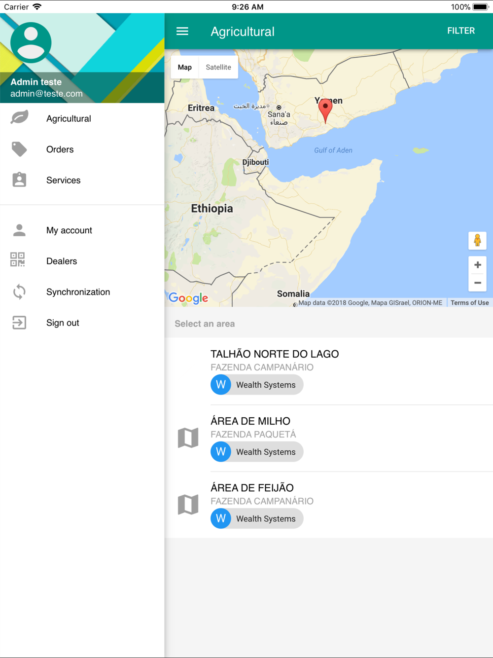 Visualização de dados agrícolas, pedidos e atendimentos.
