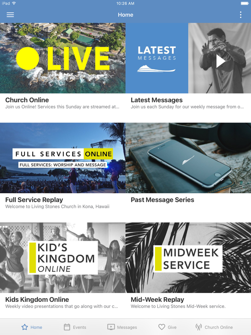 Welcome to the Living Stones Church app! With this app you have access to our Sunday LIVE services, videos from our recent message series, upcoming events, online giving, and more.
