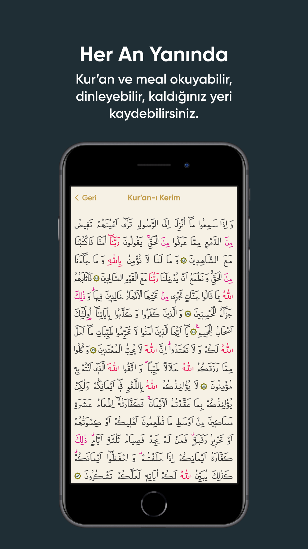 • Kur'an-ı Kerim : Tüm surelere en detaylı şekilde ulaşabilir ve dinleyebilirsiniz.