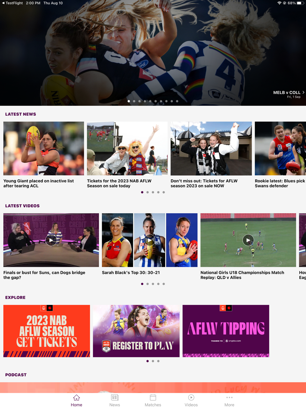 AFLW is back! You can now discover AFLW, plan your game experience and watch LIVE every game of the 2023 NAB AFL Women’s Competition on the AFLW Official app.