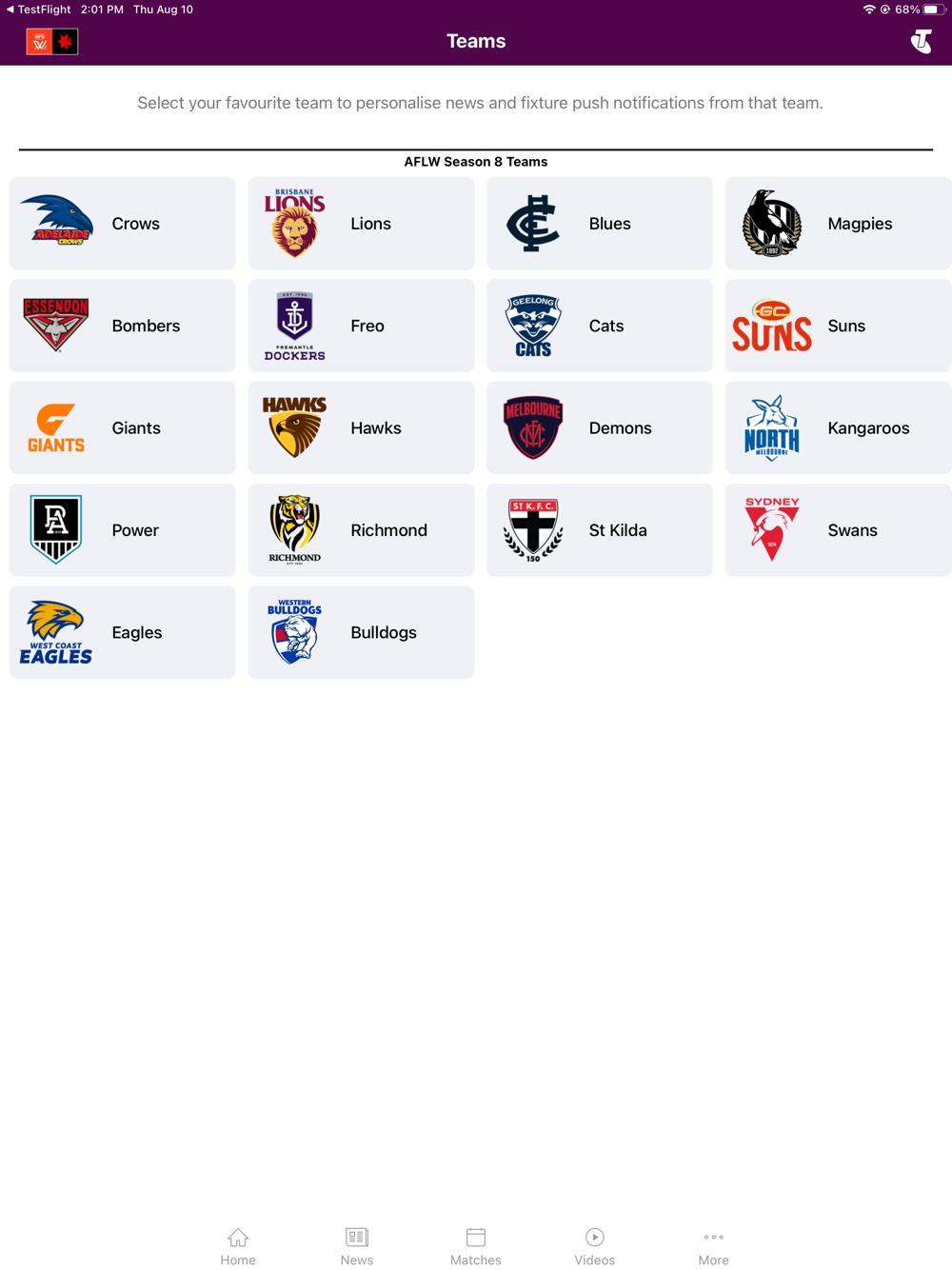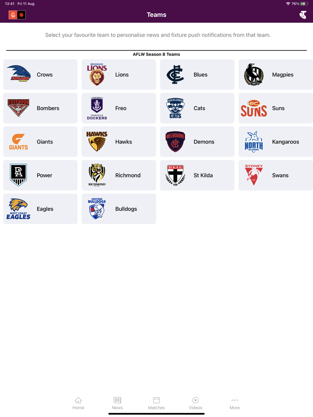 Follow the AFLW action this season including the latest team news, videos, player profiles, scores and stats, plus learn the rules of AFLW, plan your visit to every game and get to know the players on and off the field. All delivered LIVE to your smartphone or tablet!