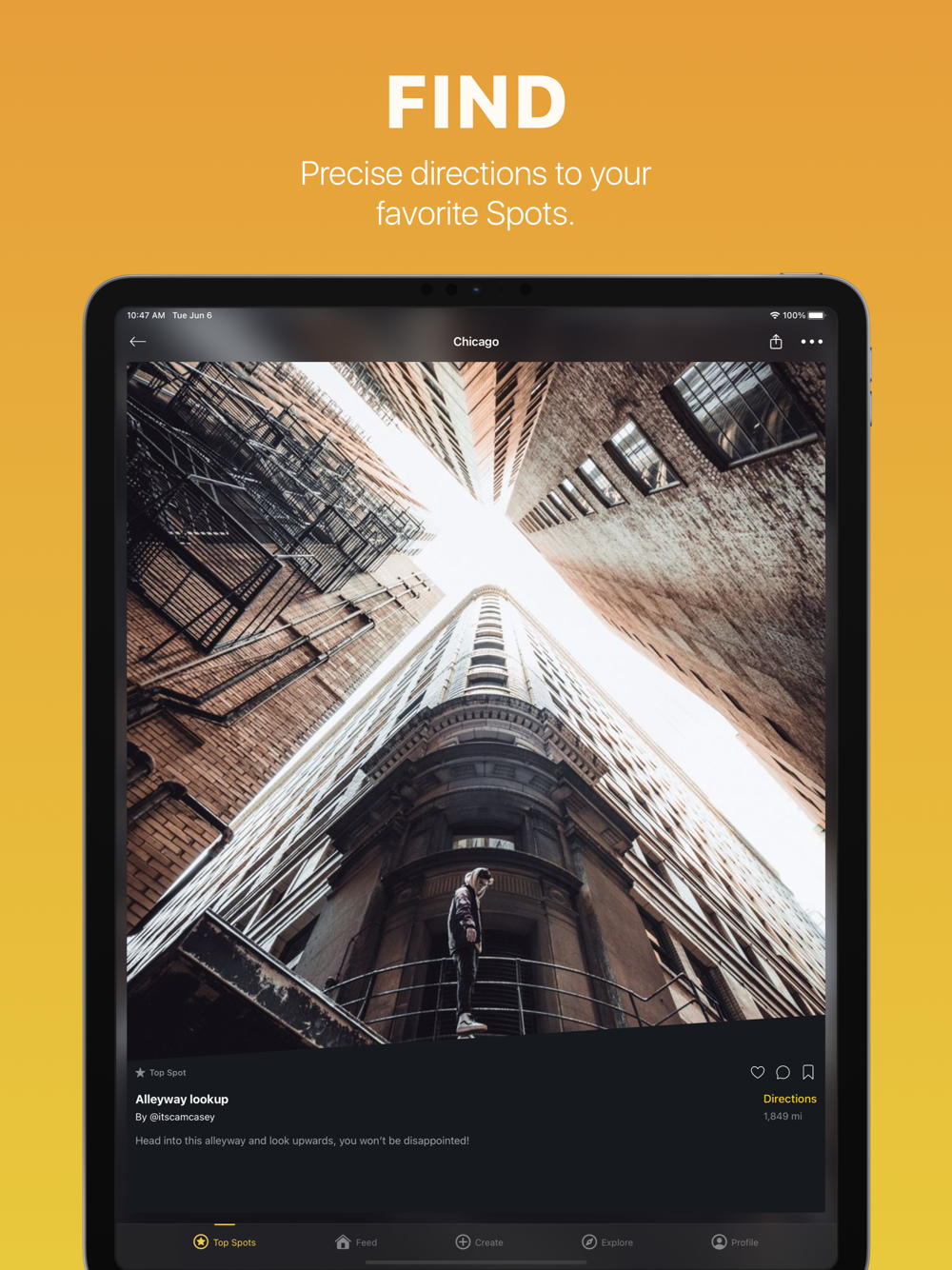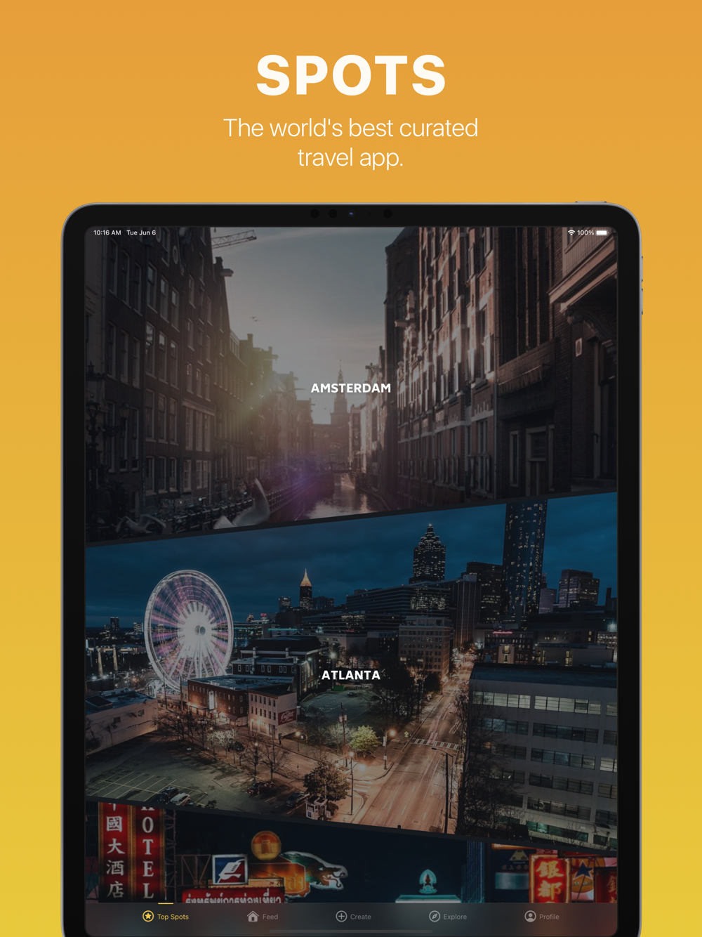 Introducing Spots. The travel guide for the visual generation. Spots will help you explore like a local expert. Currently featuring 30 cities from around the globe and hundreds of unique locations to visit, there are endless possibilities for you to capture the perfect photo for social media.