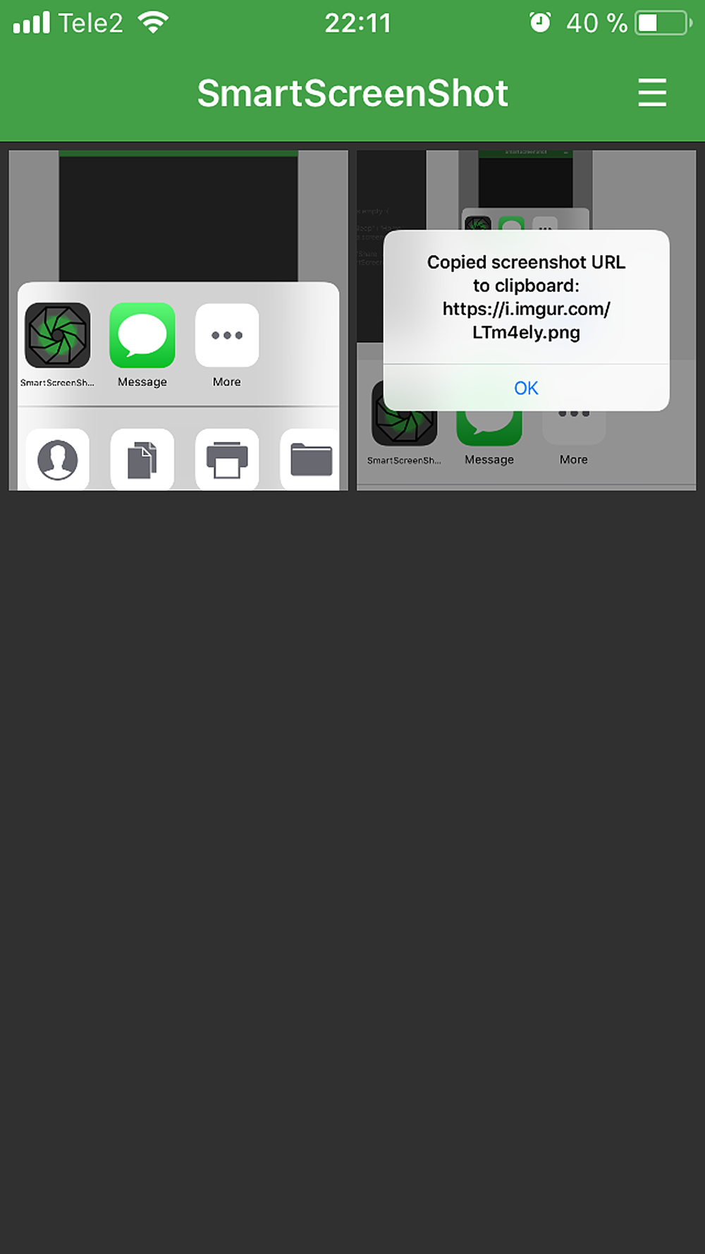 Screenshot URLs are saved in the application and you can copy them again or remove them via the main menu.