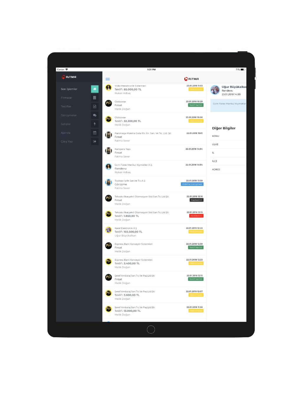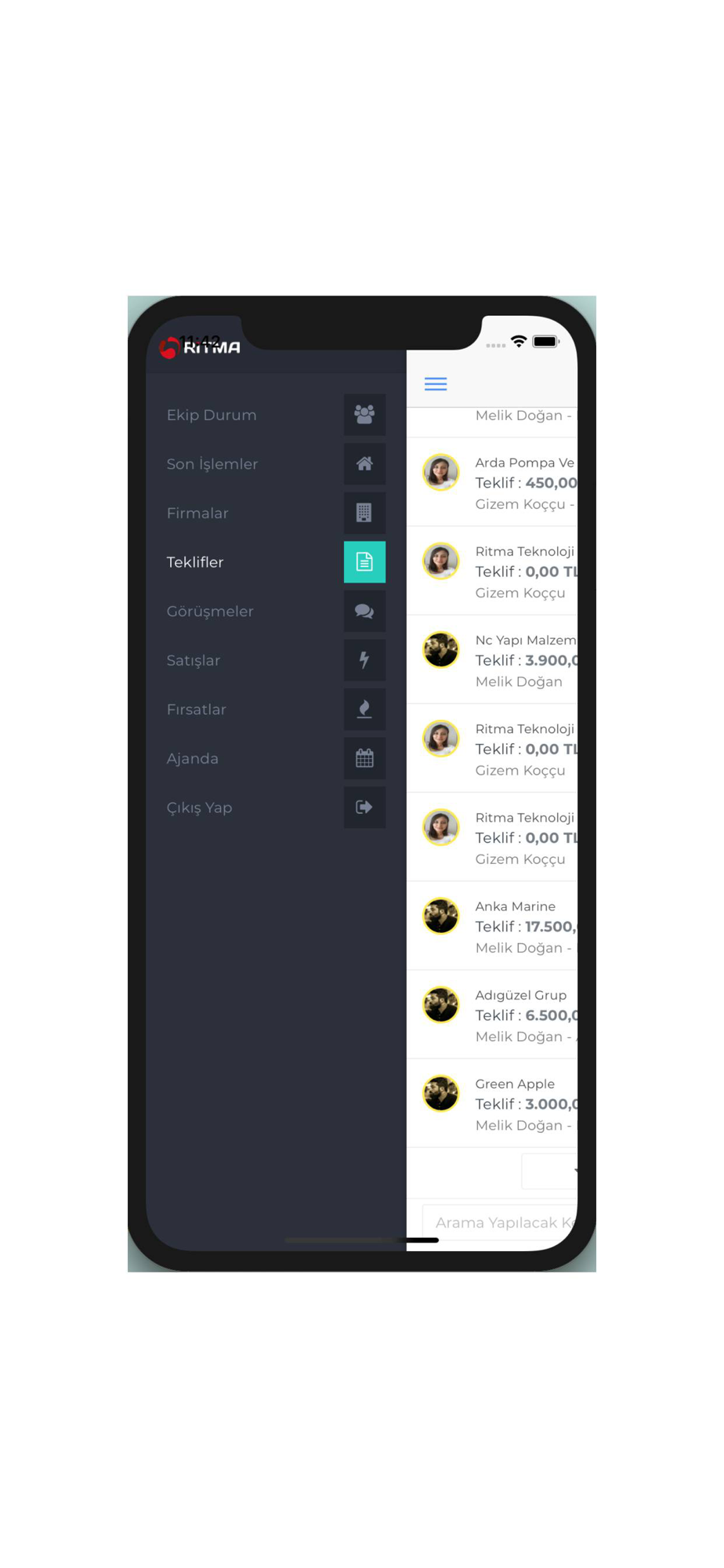 Ritma Flex yazılımı üzerinde bulunan verilerinize bu uygulama sayesinde kolayca ulaşabilir,verdiğiniz satışları ve teklifleri ,yaptığınız görüşmeleri görebilir ,randevularınızı takip edebilirsiniz.