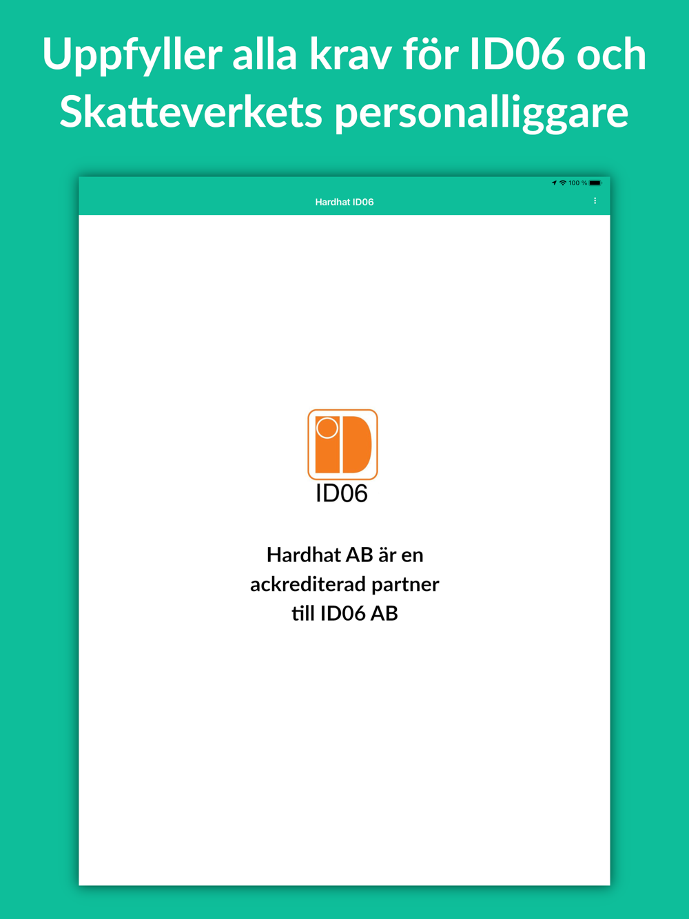 Hardhat AB är en ackrediterad partner till ID06 AB, och denna app uppfyller alla säkerhets- och funktionskrav från ID06 AB.