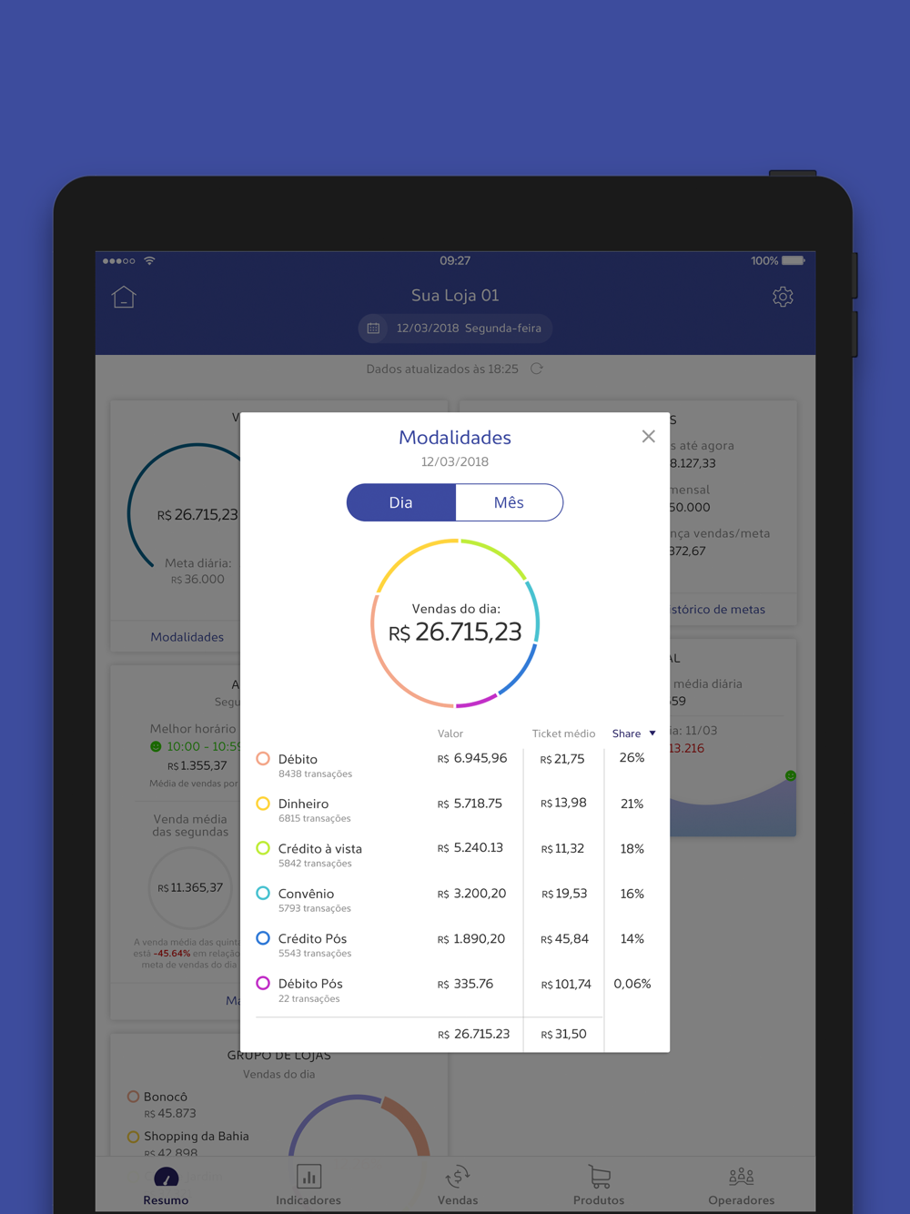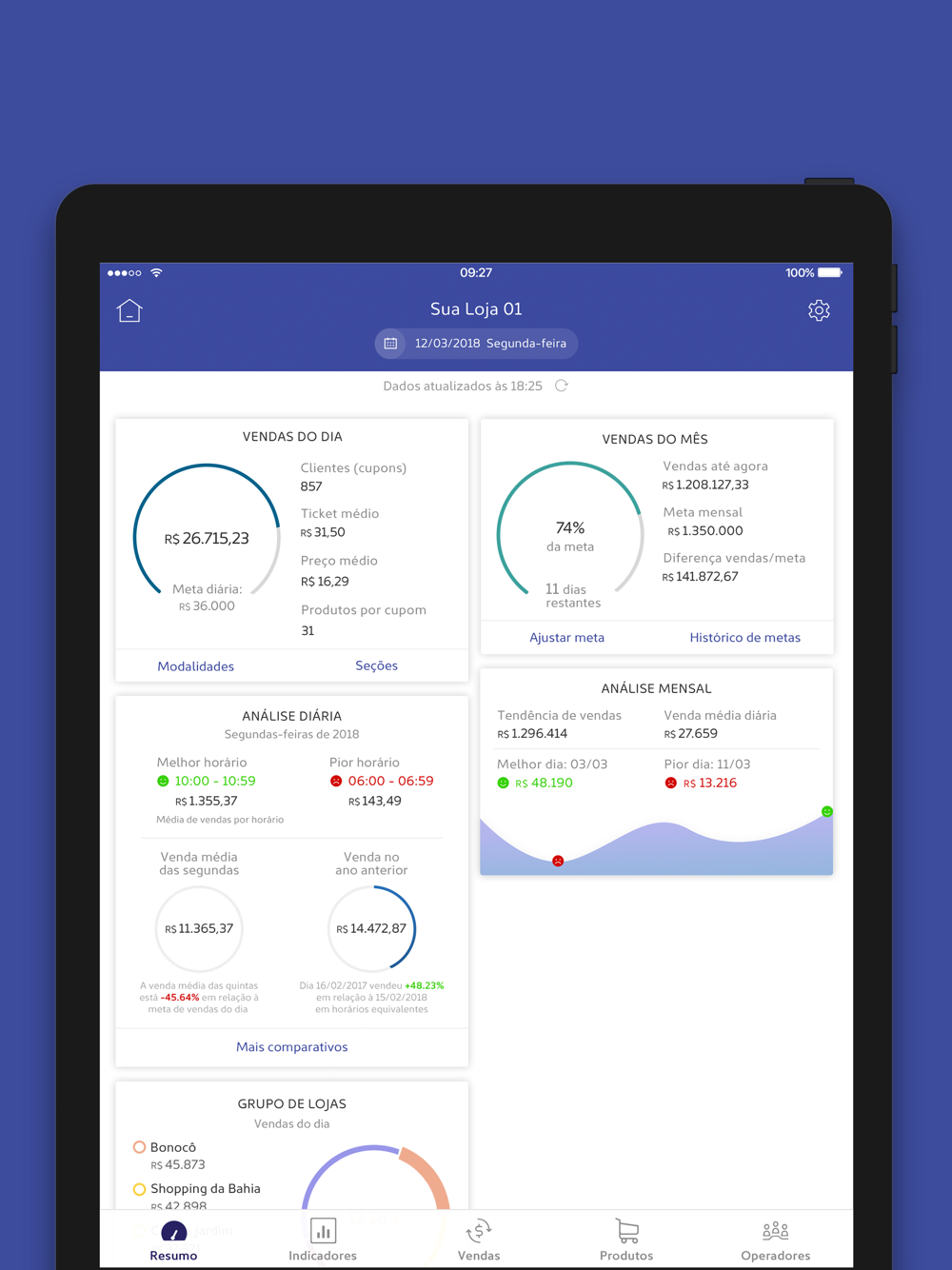 ● Operadores: Acompanhe as vendas, quantidades de registros, cupons